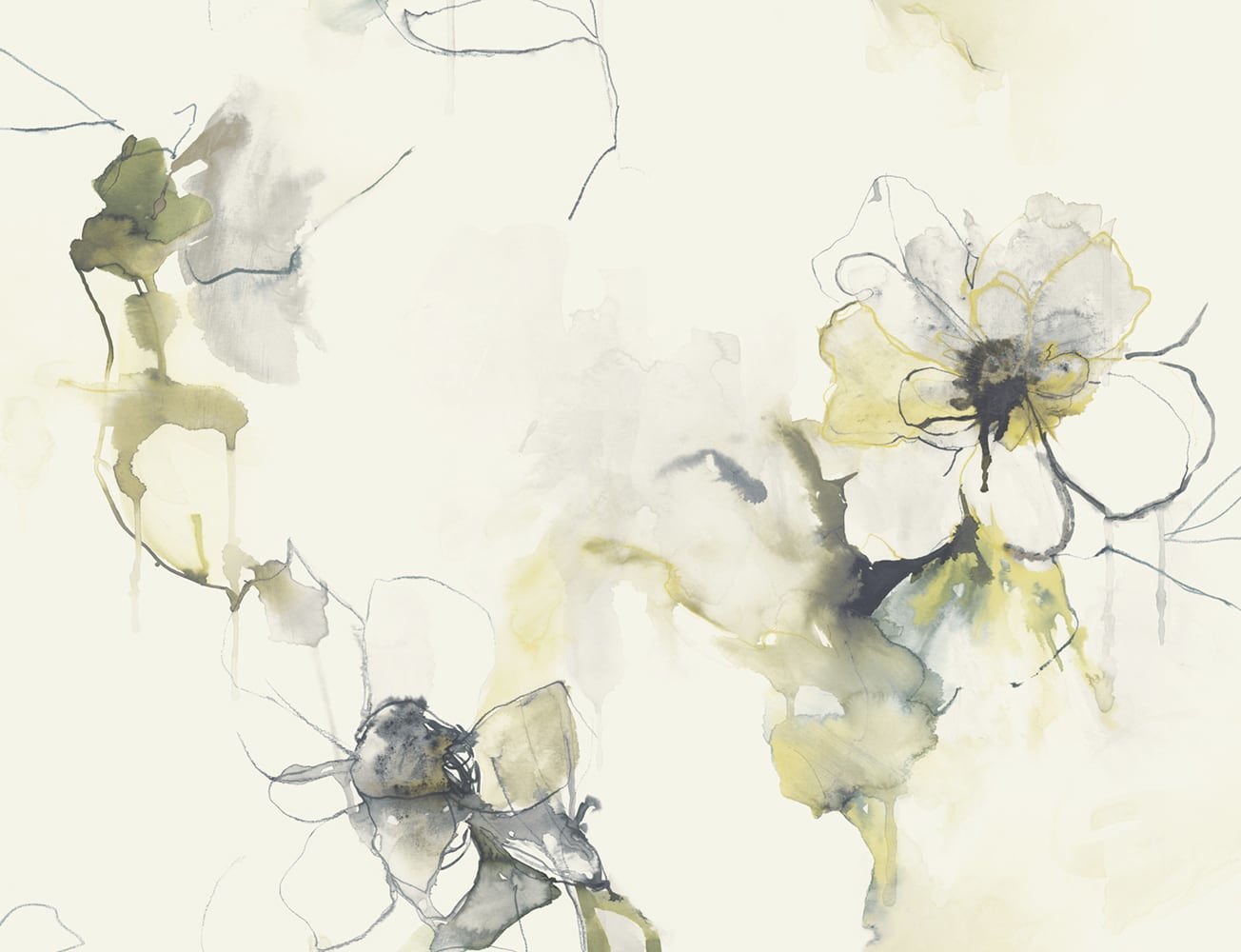 Anemone Watercolor Floral – Dark Ash and Canary | Grays Florals, Botanicals and Tropicals Wallpaper for Nursery, Bedroom, and Entryway
