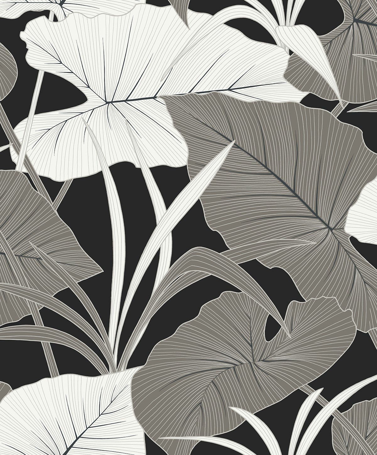Antilles – Onyx | Blacks Florals, Botanicals and Tropicals Wallpaper for Bedroom, Living Room, and Hallway
