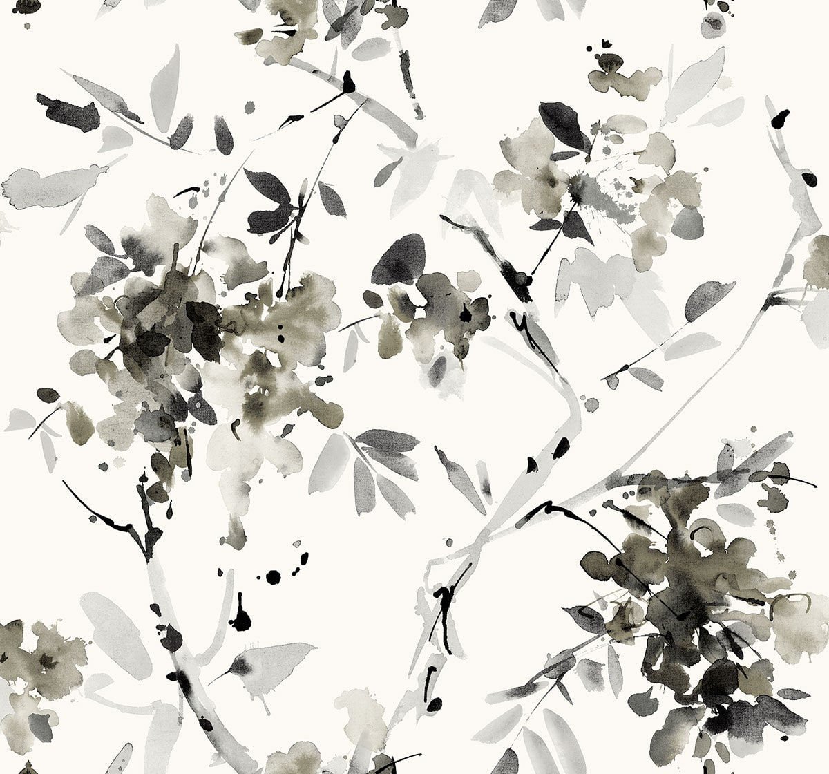 Blossom Season – Inky Splatter | Blacks Florals, Botanicals and Tropicals Wallpaper for Entryway, Powder Room, and Bedroom