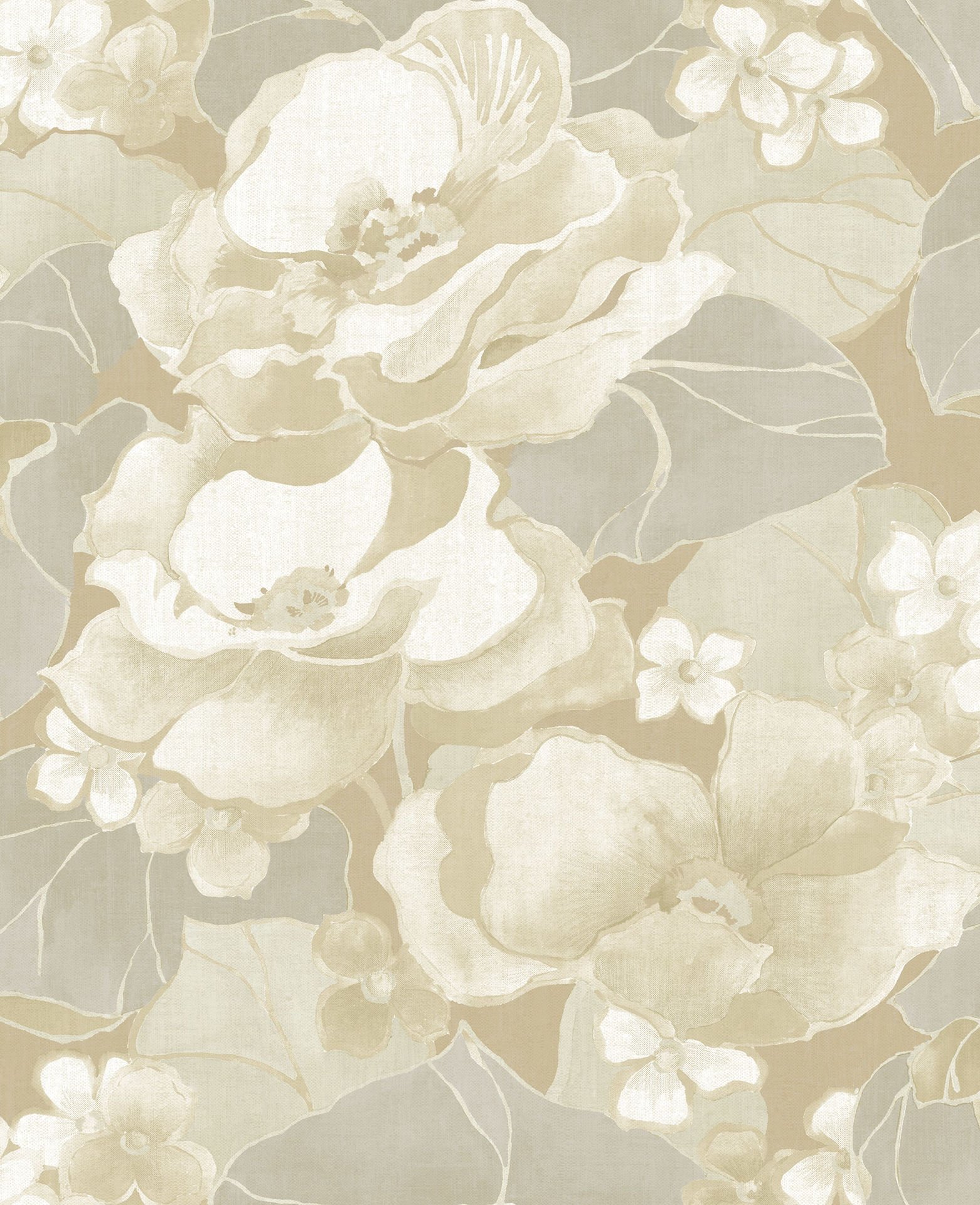 Annabella – Mink | Grays Florals, Botanicals and Tropicals Wallpaper for Half Bath, Living Room, and Entryway