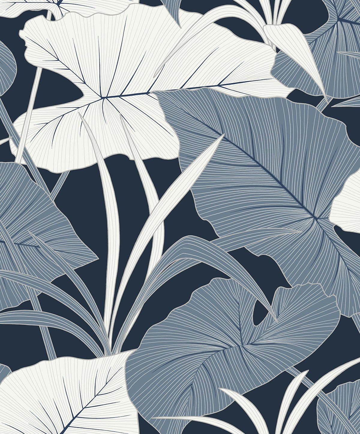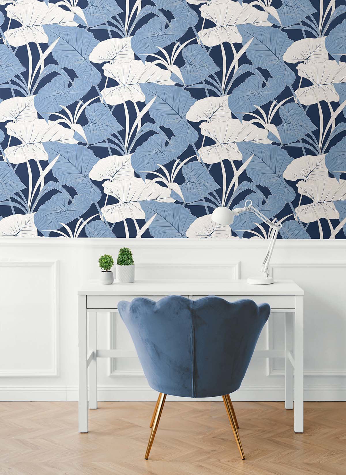 Big Leaf – Blue Knoll | Blues Florals, Botanicals and Tropicals Wallpaper for Office, Hallway, and Living Room