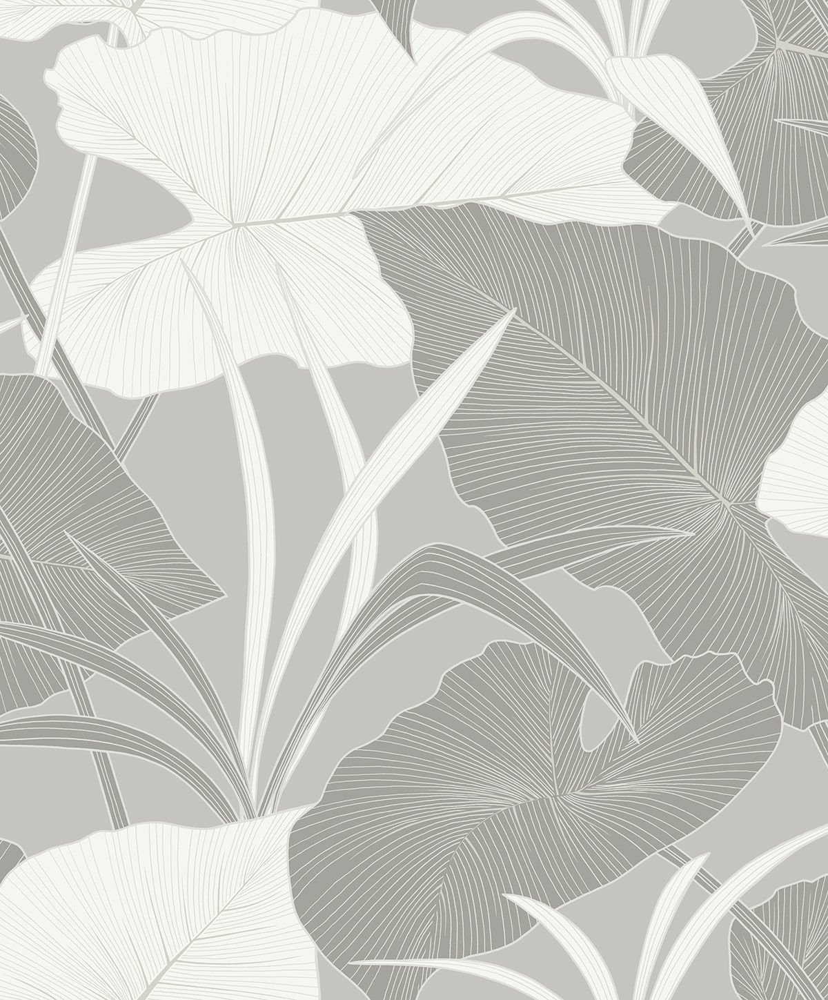 Big Leaf – Steel | Grays Florals, Botanicals and Tropicals Wallpaper for Living Room, Entryway, and Nursery