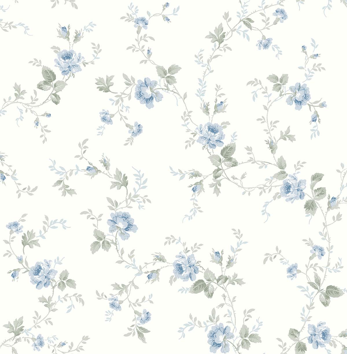 Audette – Sapphire Ice | Blues Florals, Botanicals and Tropicals Wallpaper for Half Bath, Bedroom, and Nursery