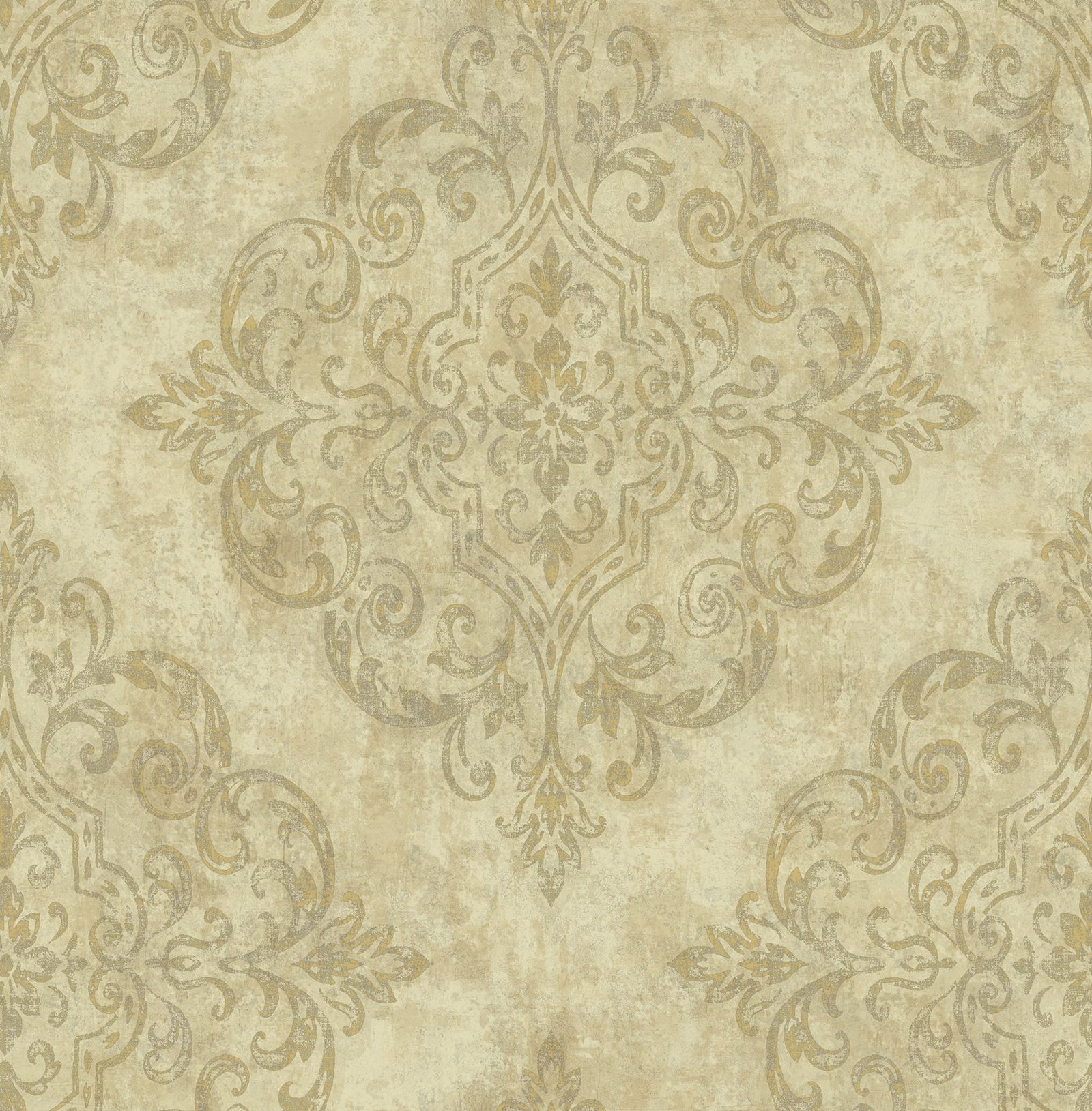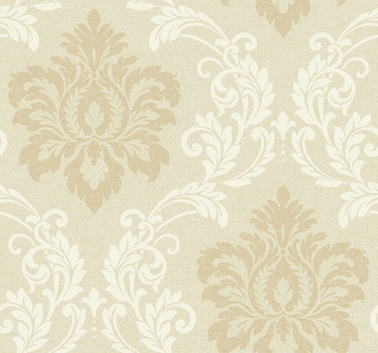 Charleston Damask | Warm Neutrals and Beiges Damasks and Scrolls Wallpaper for Hallway, Half Bath, and Office