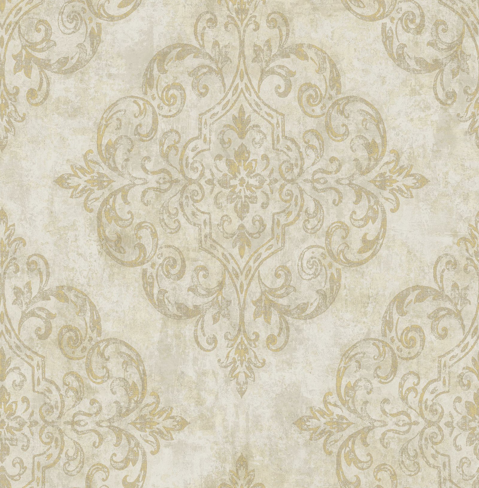 Atelier – Metallic Gold and Off-White | Golds Damasks and Scrolls Wallpaper for Accent Wall, Powder Room, and Living Room