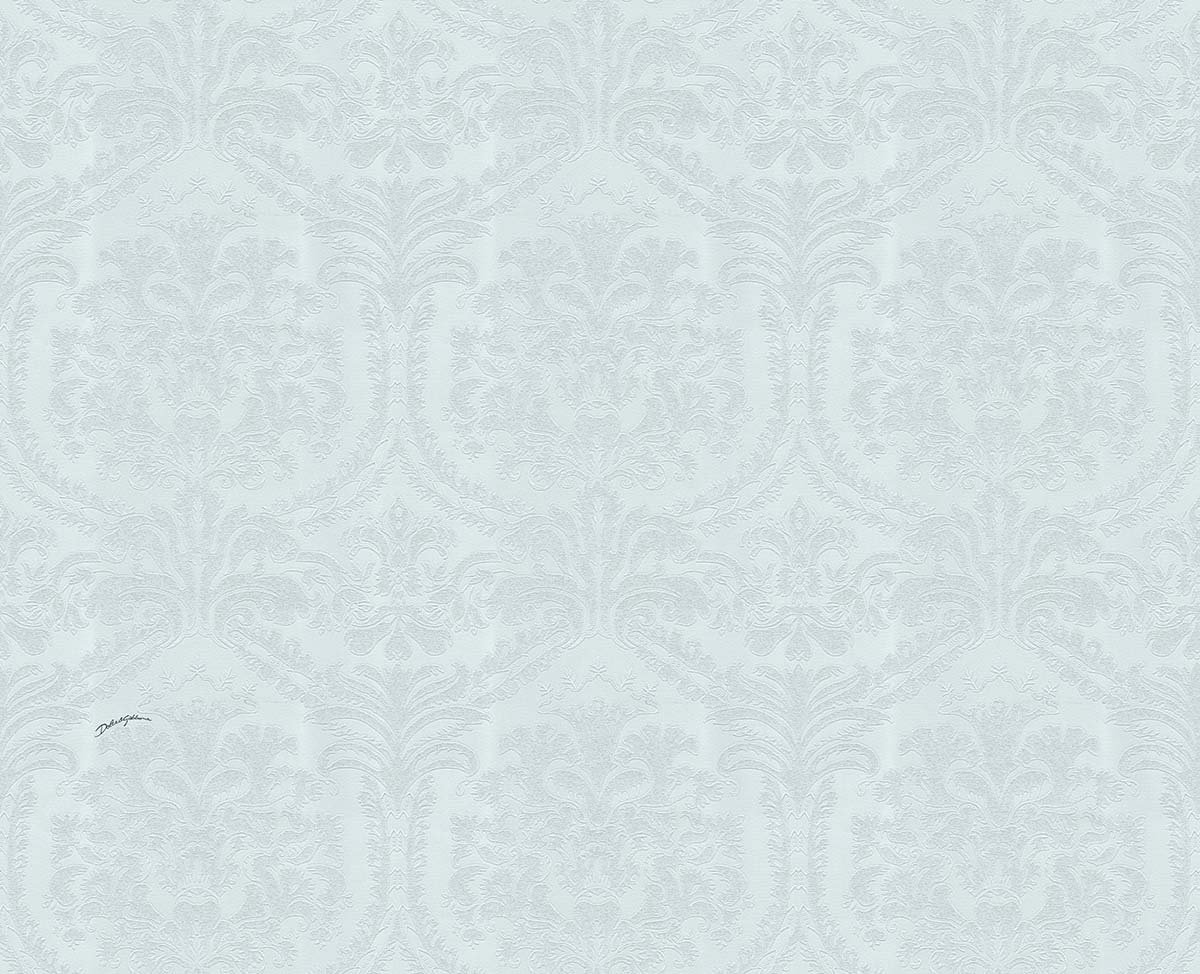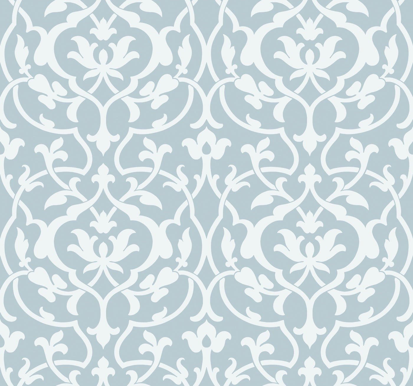 Antigua Damask – Blue Frost and Bone White | Blues Damasks and Scrolls Wallpaper for Powder Room, Entryway, and Kitchen