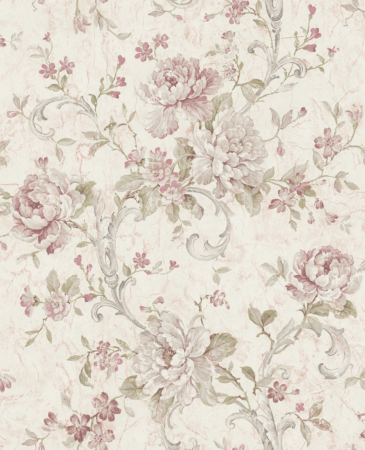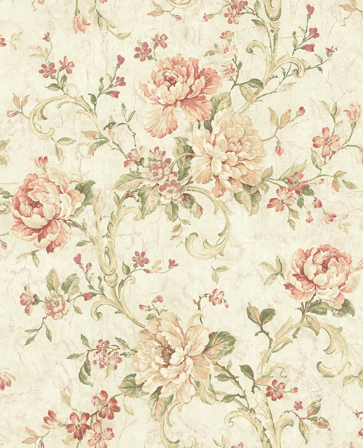 Floral Scroll – Cream and Peach | Pinks Damasks and Scrolls Wallpaper for Entryway, Living Room, and Powder Room