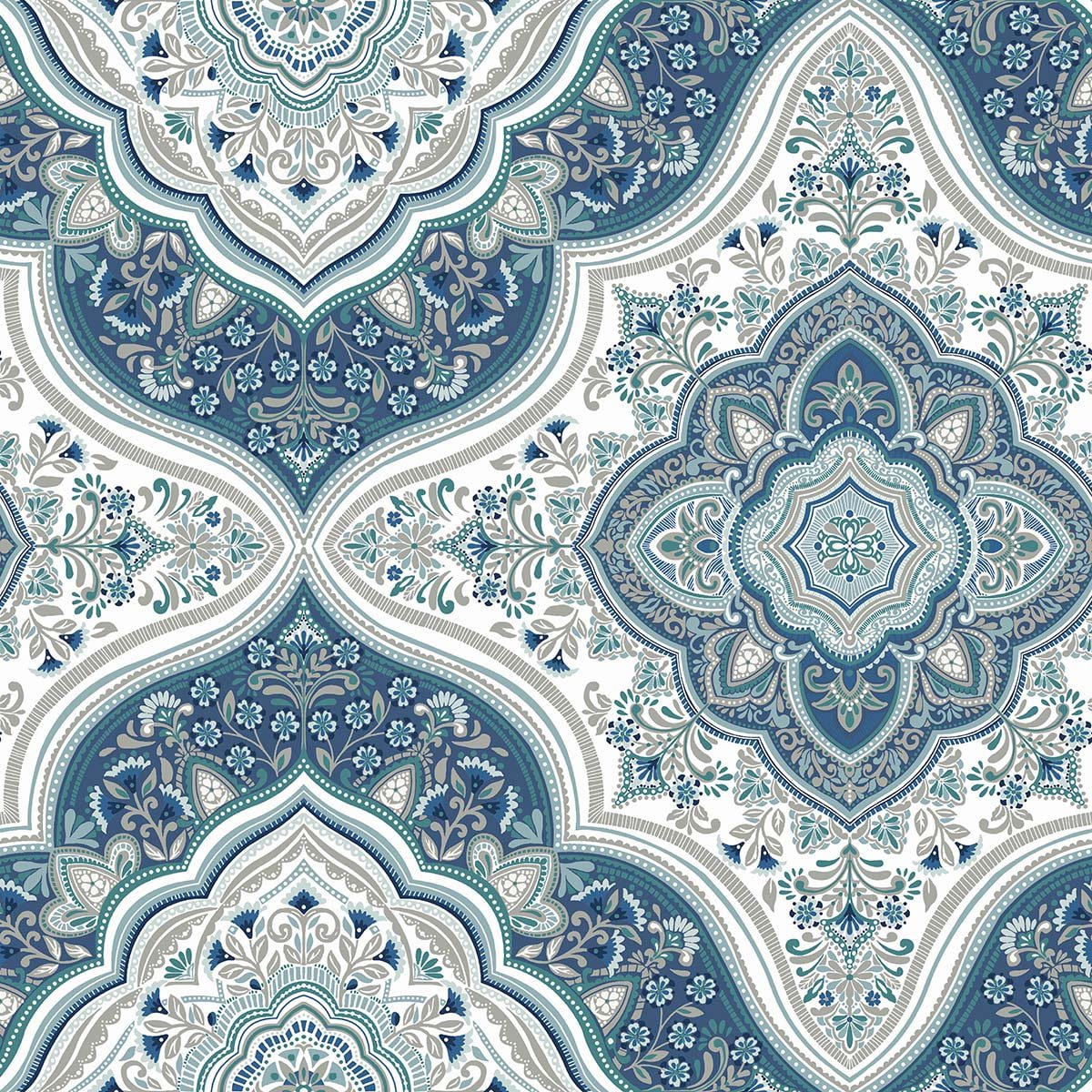 Arabesque | Aquas and Teals Damasks and Scrolls Wallpaper for Bedroom, Kitchen, and Accent Wall