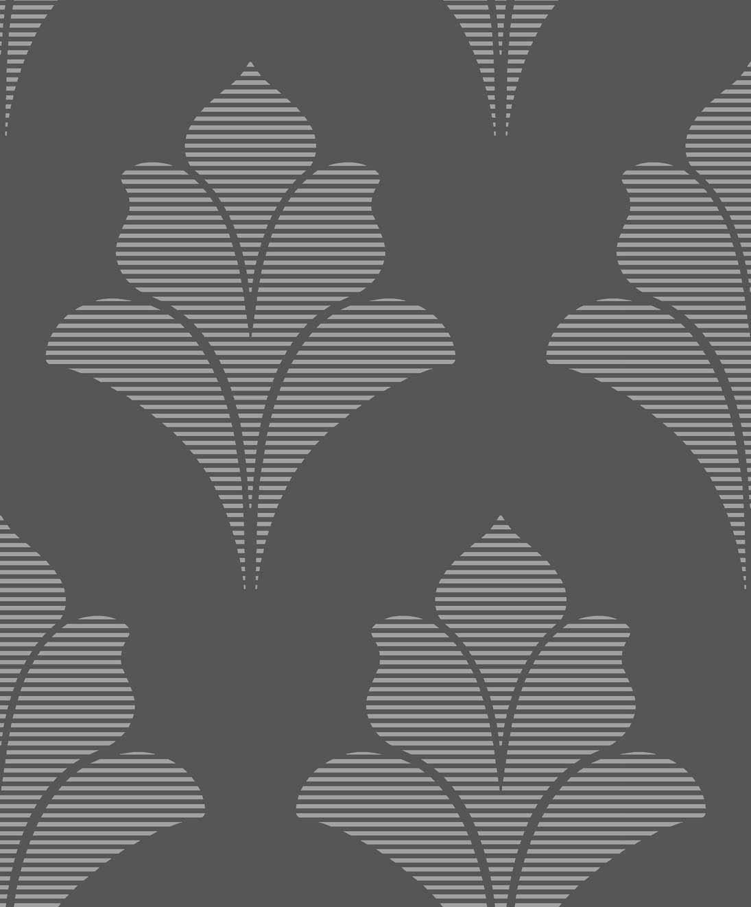 Antigua Damask – Charcoal and Ivory | Grays Damasks and Scrolls Wallpaper for Powder Room, Living Room, and Nursery