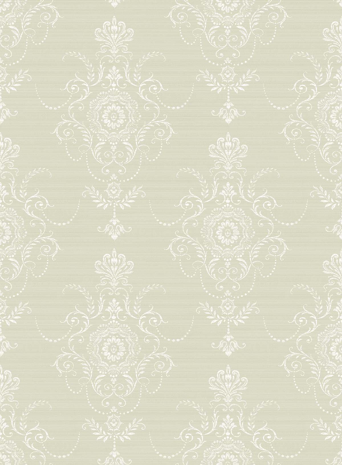 Charleston Damask | Cool Neutrals Damasks and Scrolls Wallpaper for Living Room, Kitchen, and Office