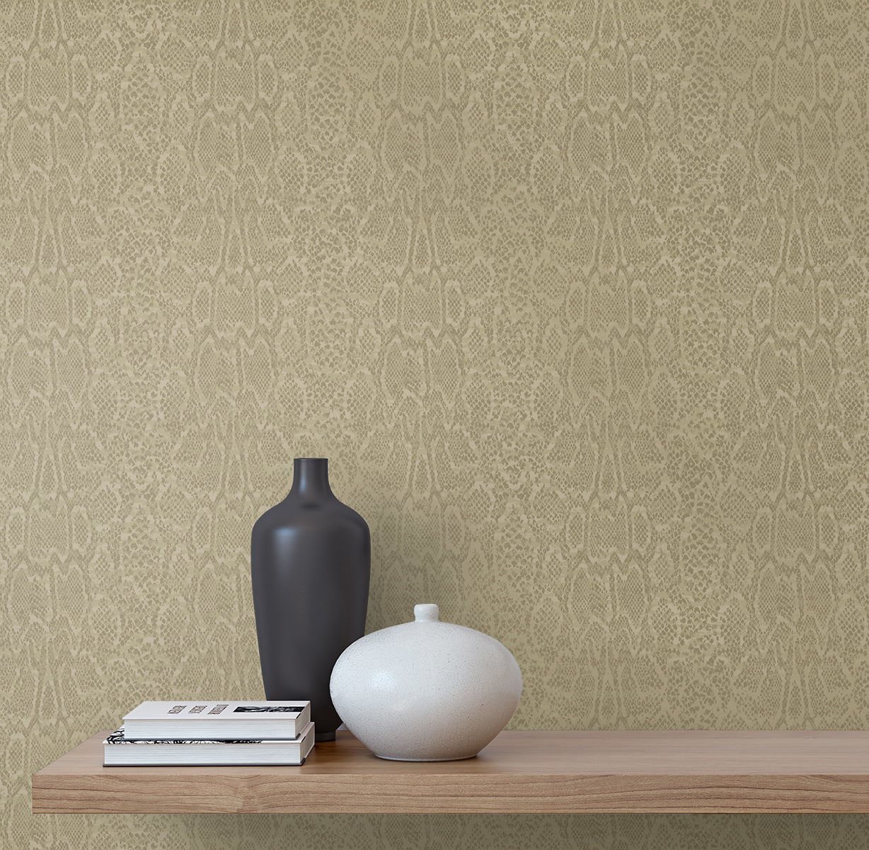 Aura Skin – Gold and Beige | Warm Neutrals and Beiges Animals, Birds and Insects Wallpaper for Nursery, Living Room, and Accent Wall