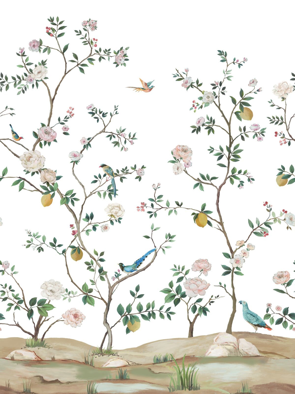 Kauai – Blushy | Oranges Animals, Birds and Insects Wallpaper for Hallway, Nursery, and Dining Room
