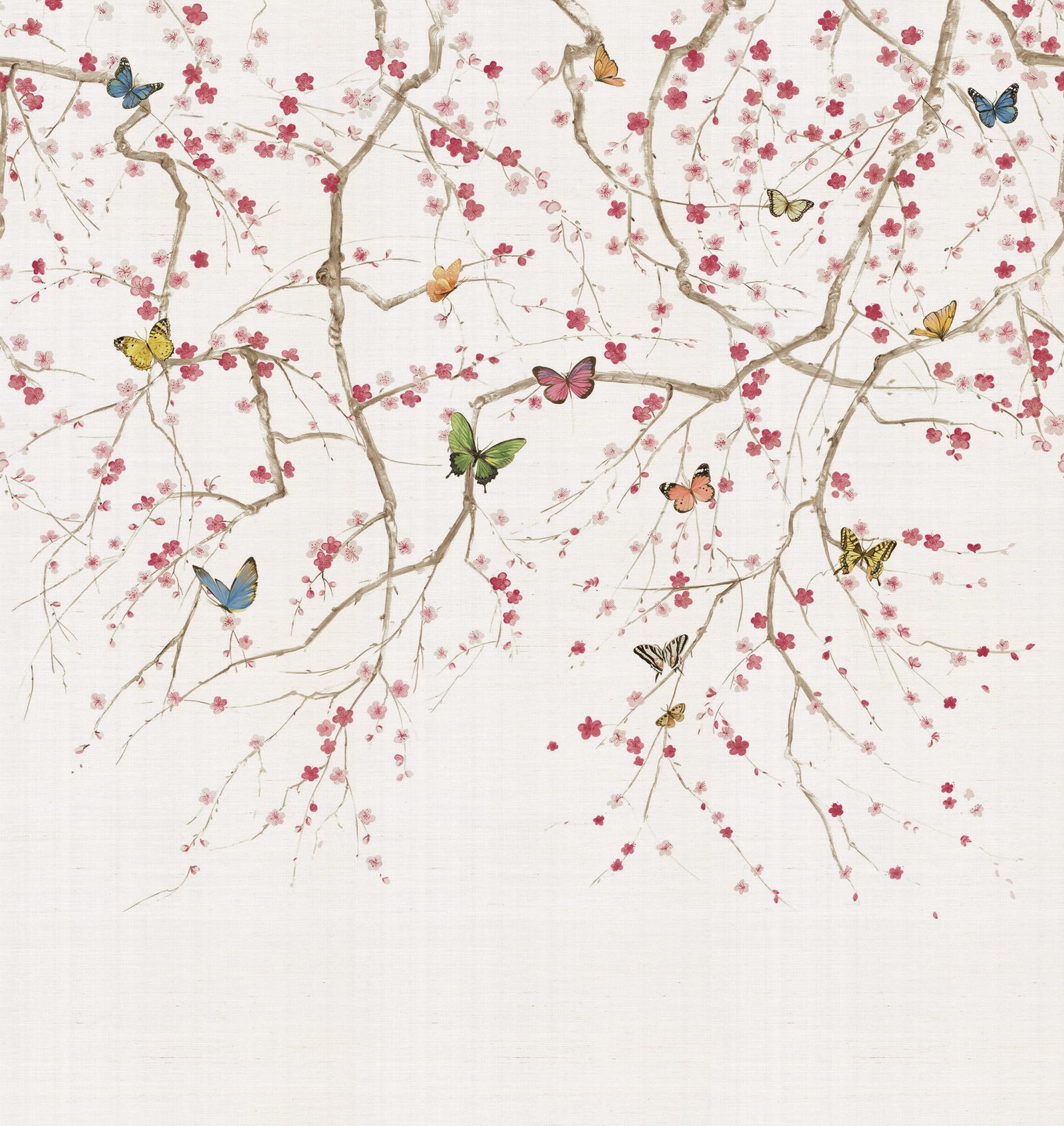 Maisome Mural on Grasscloth – Mei | Multicolors Animals, Birds and Insects Wallpaper for Powder Room, Hallway, and Kitchen