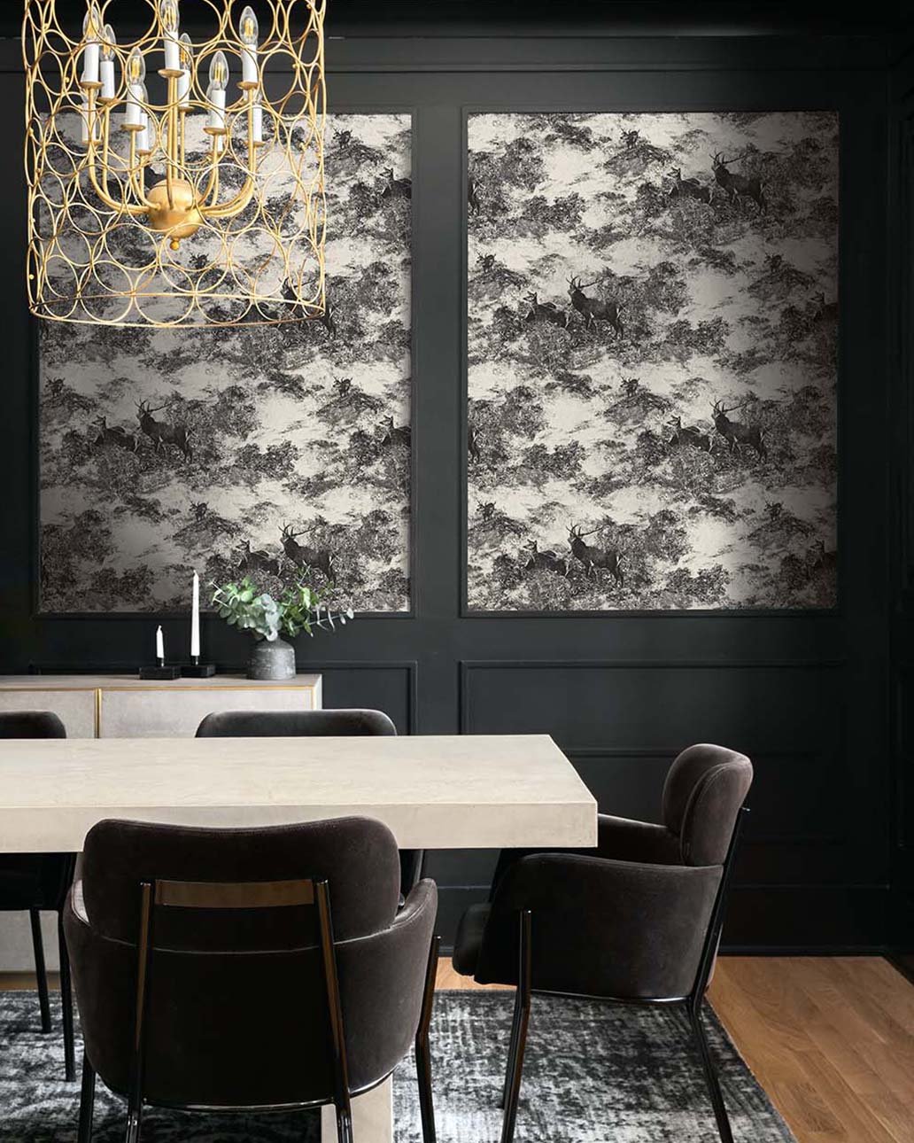 Bedgebury – Sable | Blacks Animals, Birds and Insects Wallpaper for Living Room, Dining Room, and Entryway