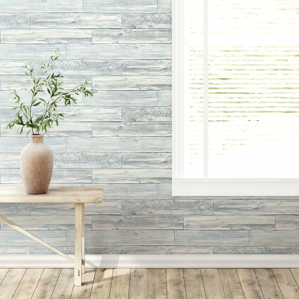 Wood Planks | Blues Farmhouse Wallpaper for Living Room, Half Bath, and Nursery