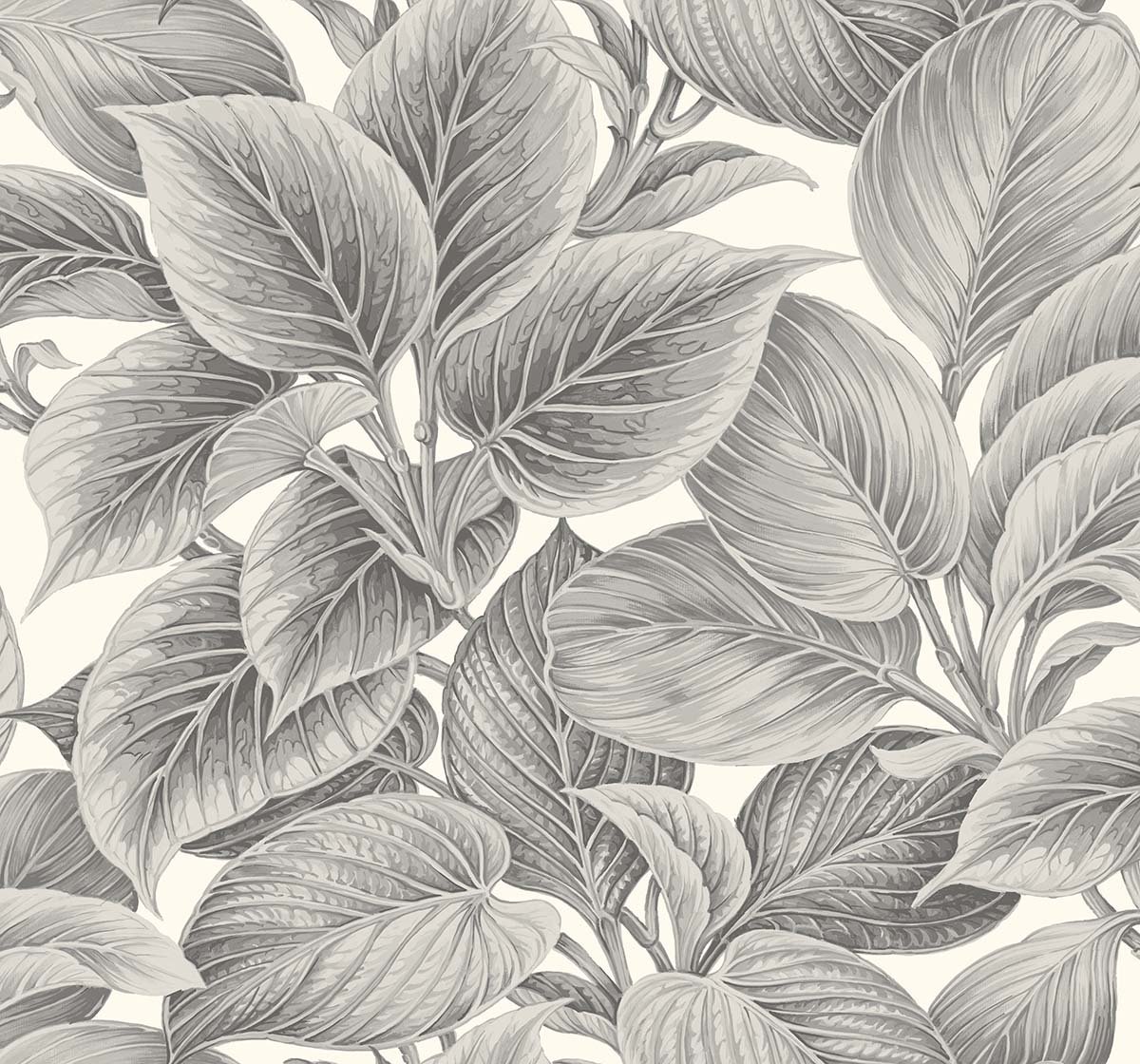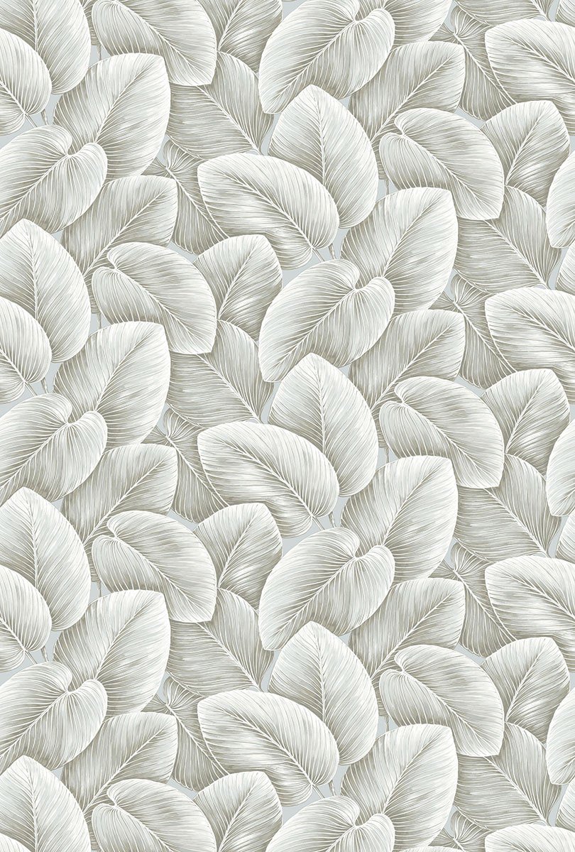 Grande Leaf – Fog | Grays Trees and Leaves Wallpaper for Bedroom, Living Room, and Hallway