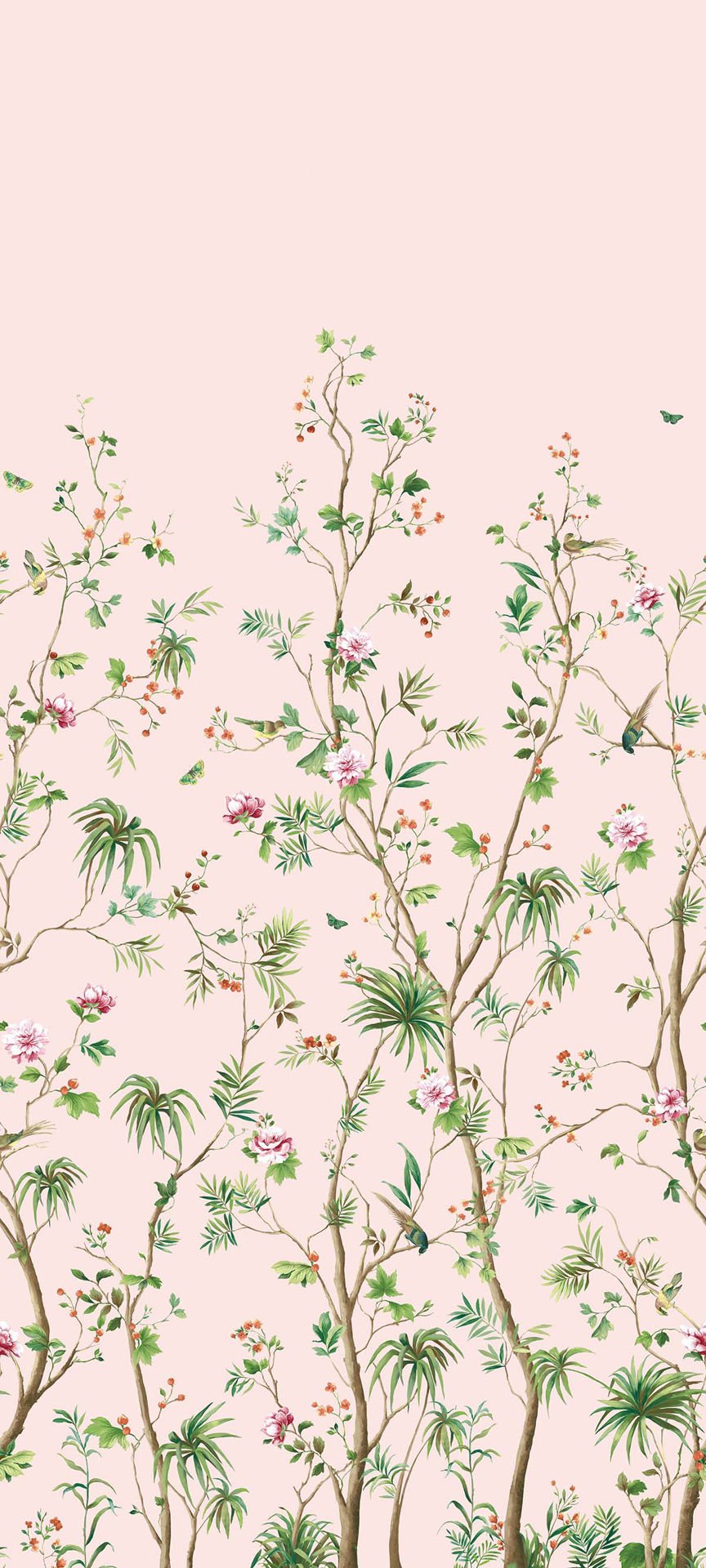 Wallpaper designs in blush, soft rose, and vibrant pink tones for playful or elegant spaces.