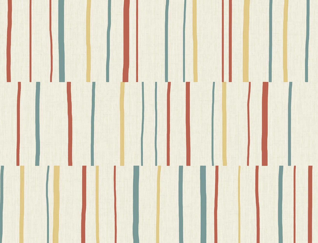 Block Lines – Vermillion, Sunflower, and Teal | Reds Plaids, Checks and Stripes Wallpaper for Office, Bedroom, and Half Bath