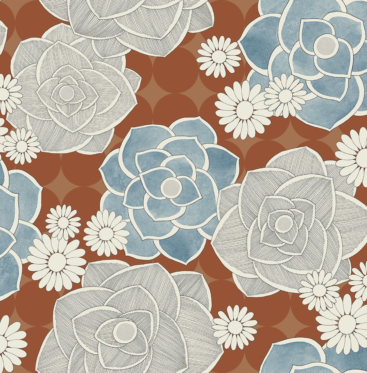 Skyline Flowers | Reds Florals, Botanicals and Tropicals Wallpaper for Entryway, Powder Room, and Office