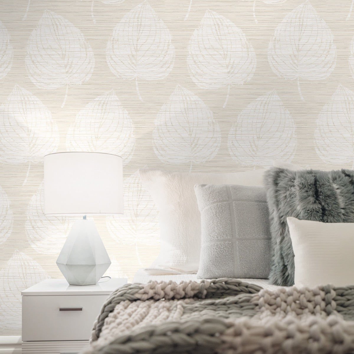 Woodward – Gilded | Whites and Off Whites Trees and Leaves Wallpaper for Bedroom, Powder Room, and Dining Room