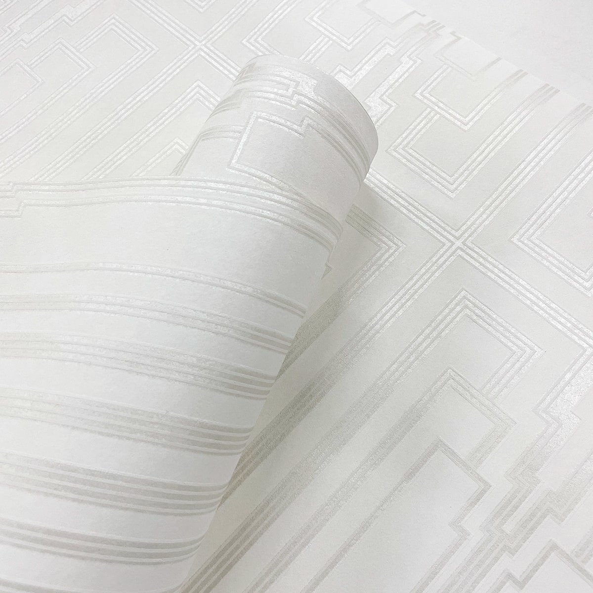 Manhattan – Pearlescent | Whites and Off Whites Geometrics Wallpaper for Office, Accent Wall, and Powder Room