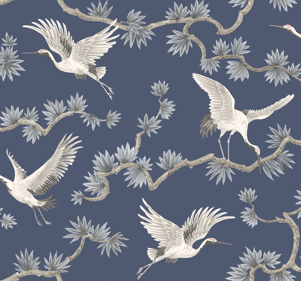 Akan – Dusk | Blues Animals, Birds and Insects Wallpaper for Kitchen, Half Bath, and Living Room
