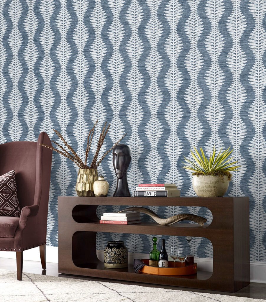 Enhance your space with this Navys Trees and Leaves Wallpaper, perfect for powder room, living room, and entryway.