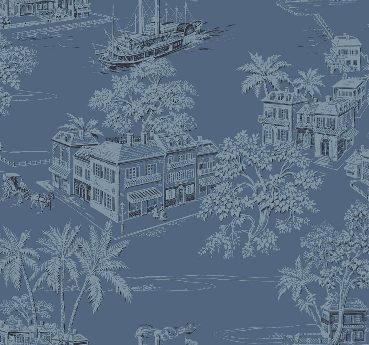 Charleston Toile | Blues Toiles Wallpaper for Living Room, Office, and Accent Wall