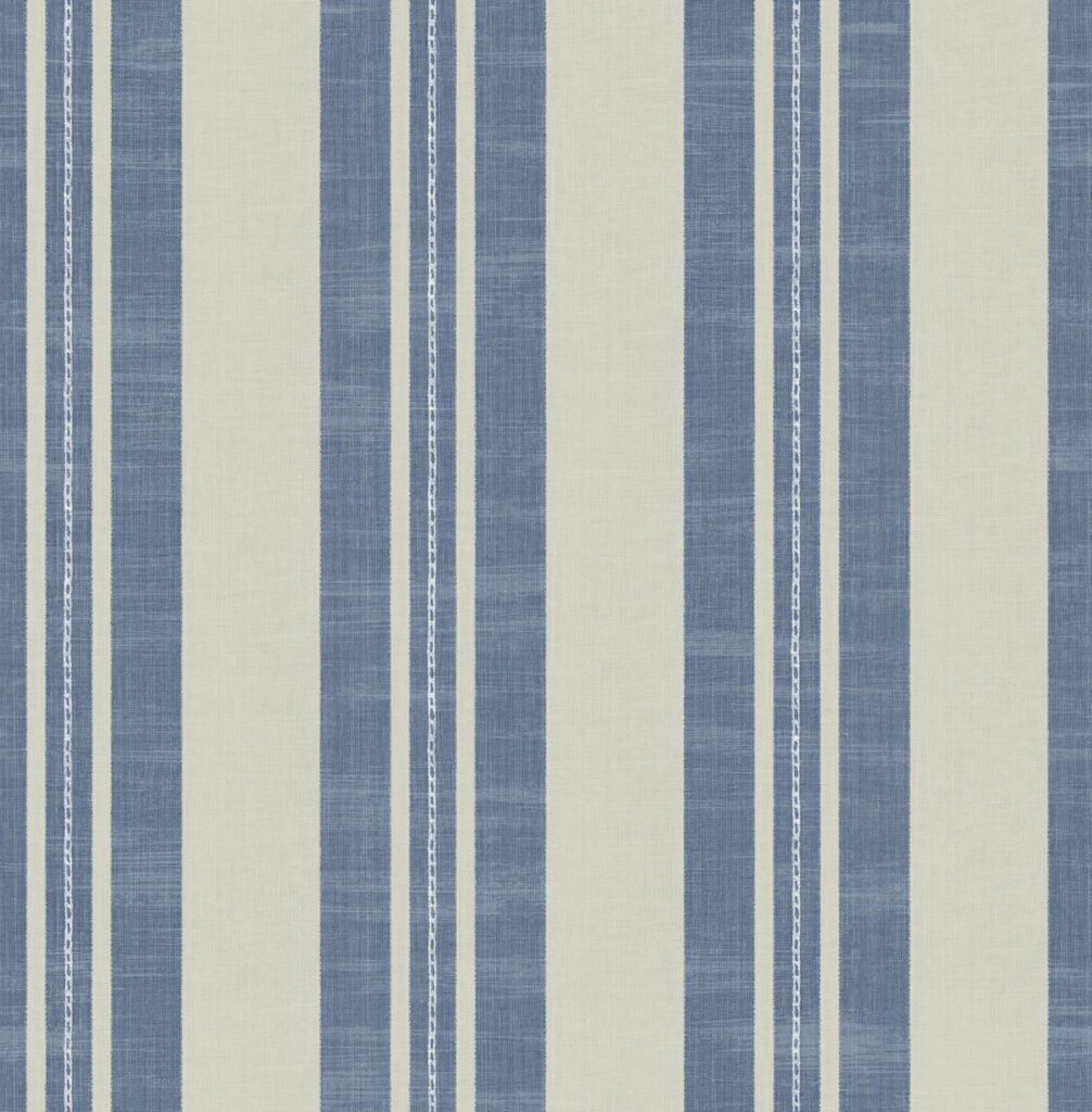 Linen Stripe – Denim and Soft Gray | Blues Plaids, Checks and Stripes Wallpaper for Hallway, Half Bath, and Office