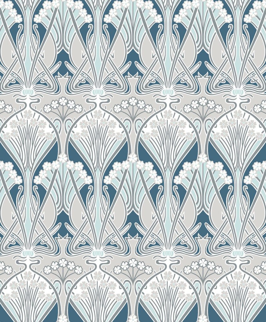 Enhance your space with this Blues Damasks and Scrolls Wallpaper, perfect for office, half bath, and bedroom.