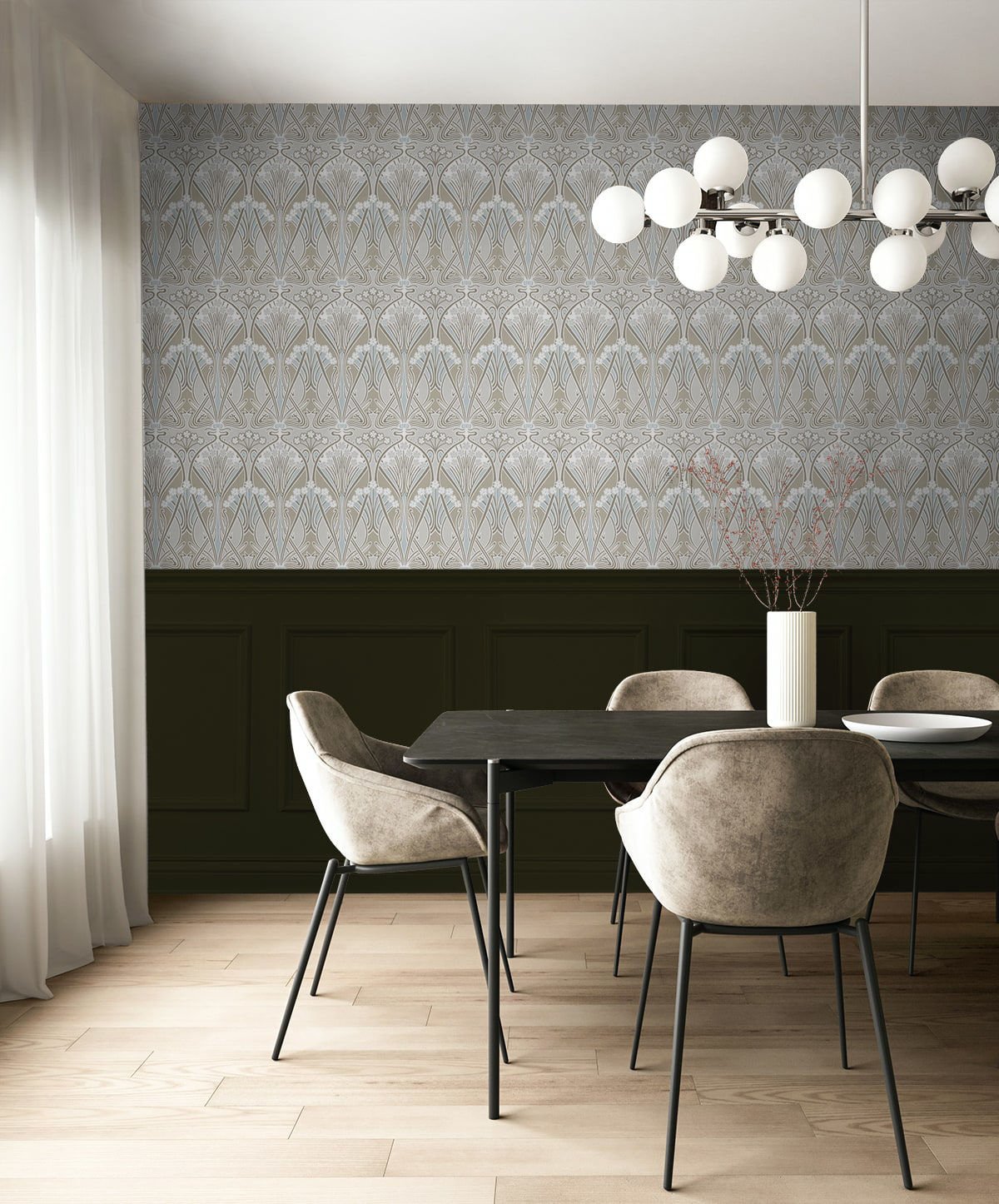Dragonfly Damask – Soft Taupe and Blue Mist Cool Neutrals Damasks and Scrolls Wallpaper is a premium damasks and scrolls wallpaper designed to elevate your kitchen, powder room, and bedroom. Crafted with high-quality materials, this wallpaper combines durability and elegance, making it the perfect choice for those seeking a sophisticated touch. Its damasks and scrolls design adds texture and depth, enhancing any space with warmth and character.