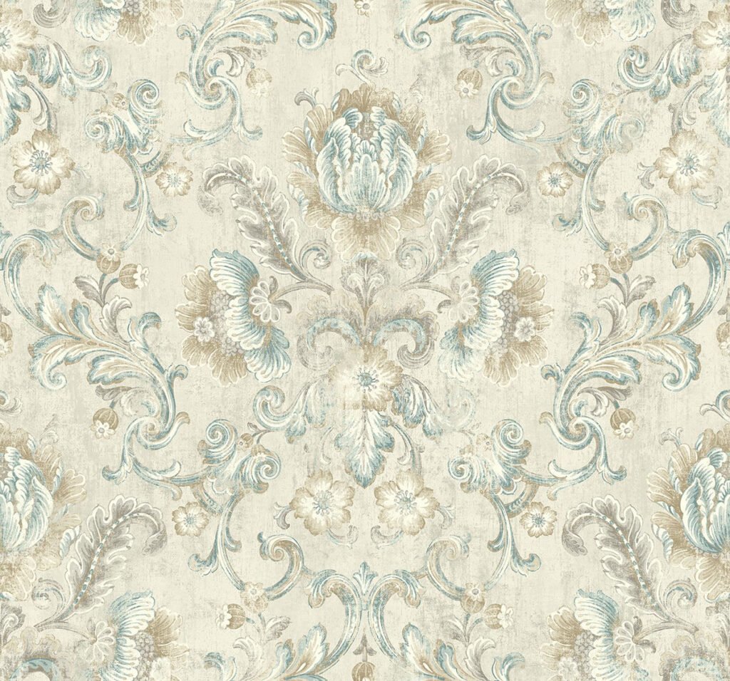 Floral Cameo – Greige and Blue | Blues Florals, Botanicals and Tropicals Wallpaper for Office, Half Bath, and Nursery