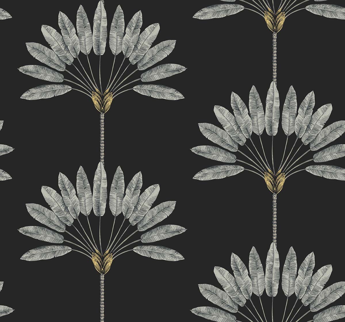 Flourish – Jet | Blacks Trees and Leaves Wallpaper for Hallway, Entryway, and Living Room