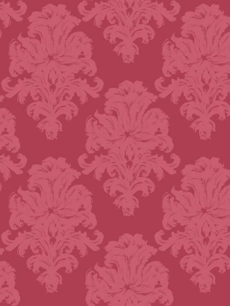 Montserrat – Salmon Pink and Strawberry | Pinks Damasks and Scrolls Wallpaper for Hallway, Half Bath, and Bedroom