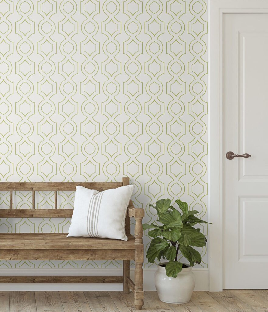 Handdrawn Geometric – Lemongrass | Greens Geometrics Wallpaper for Office, Accent Wall, and Kitchen