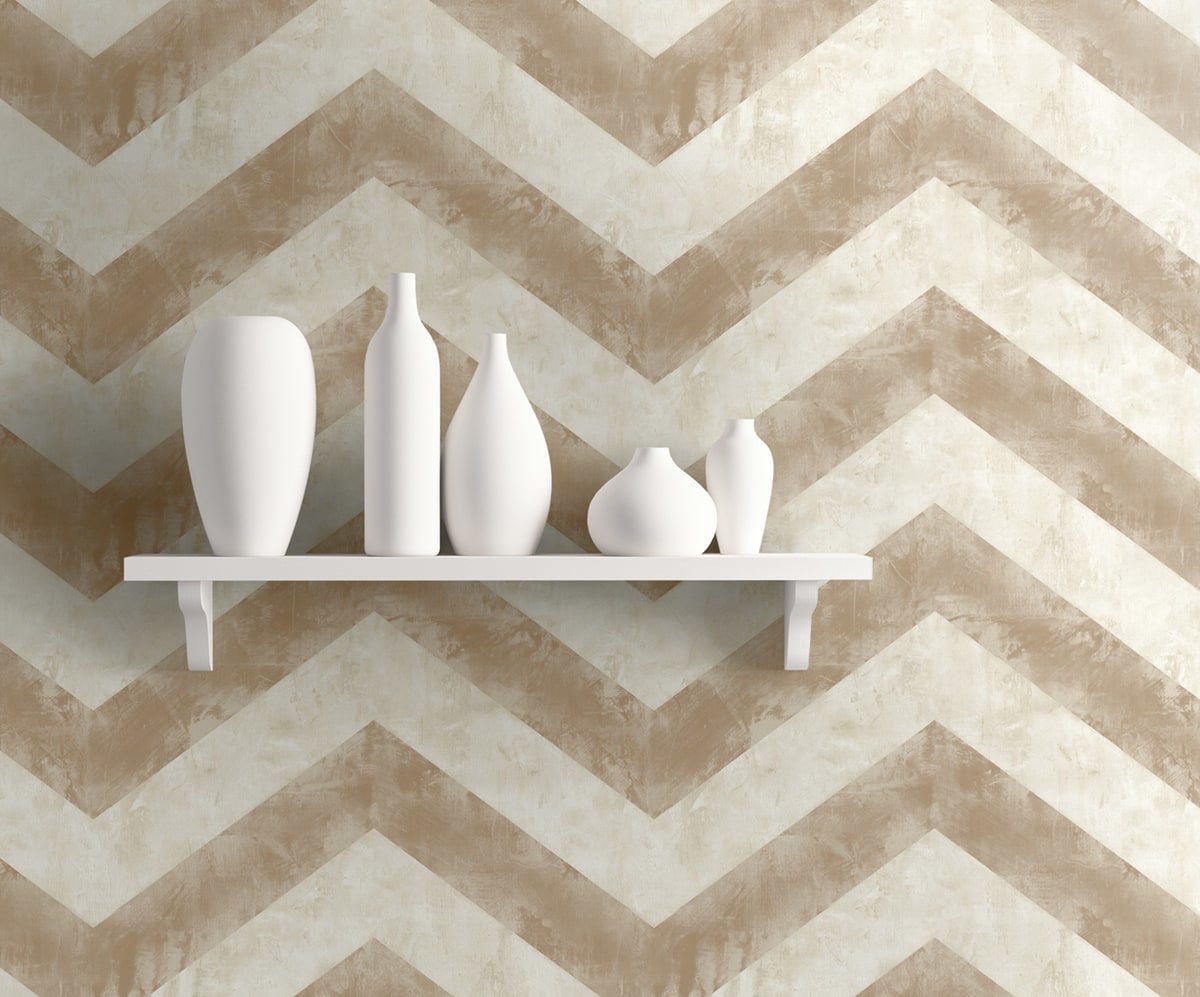 Hubble Chevron – Metallic Taupe and Ivory | Browns and Taupes Geometrics Wallpaper for Office, Accent Wall, and Dining Room