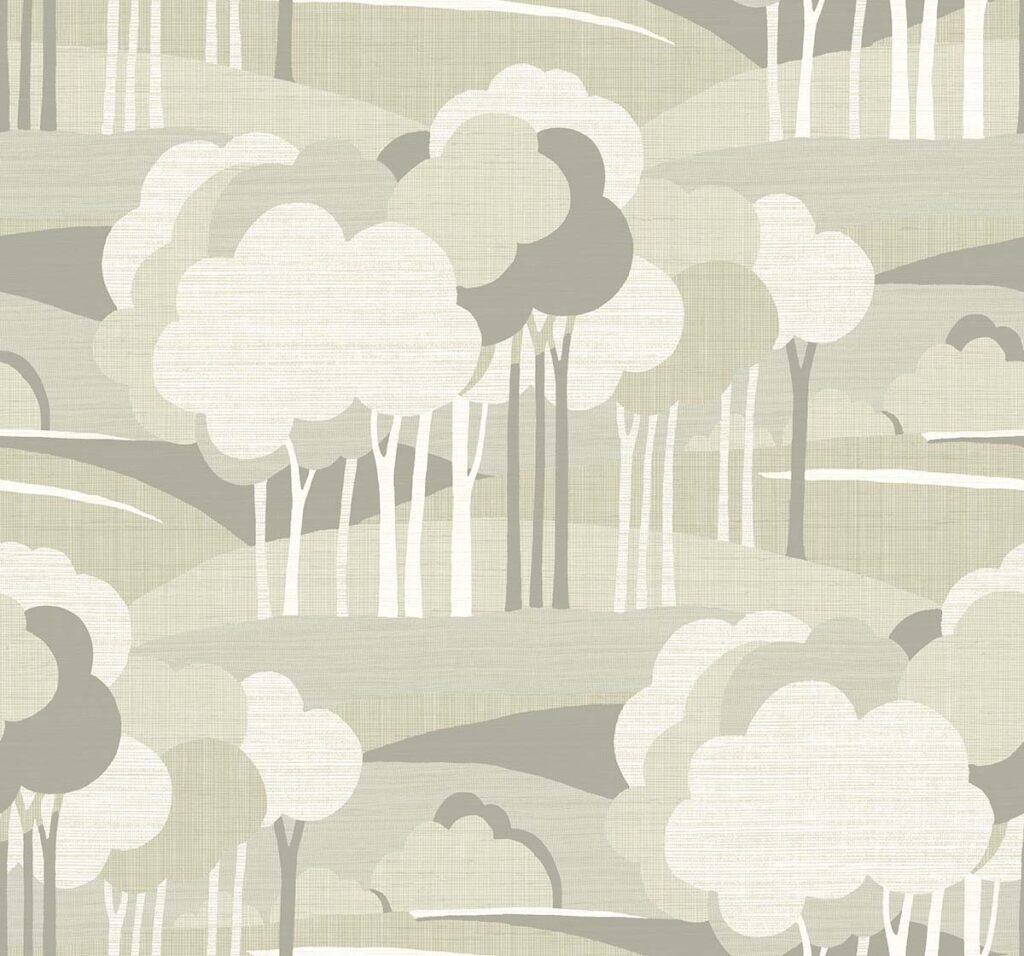 On the Horizon – Raffia | Warm Neutrals and Beiges Trees and Leaves Wallpaper for Living Room, Dining Room, and Nursery
