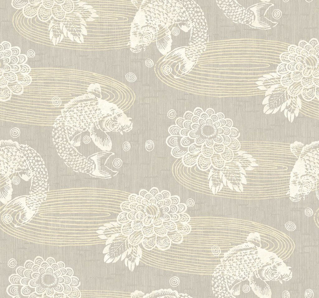 Koi Pond | Grays Asian and Chinoiseries Wallpaper for Kitchen, Accent Wall, and Entryway