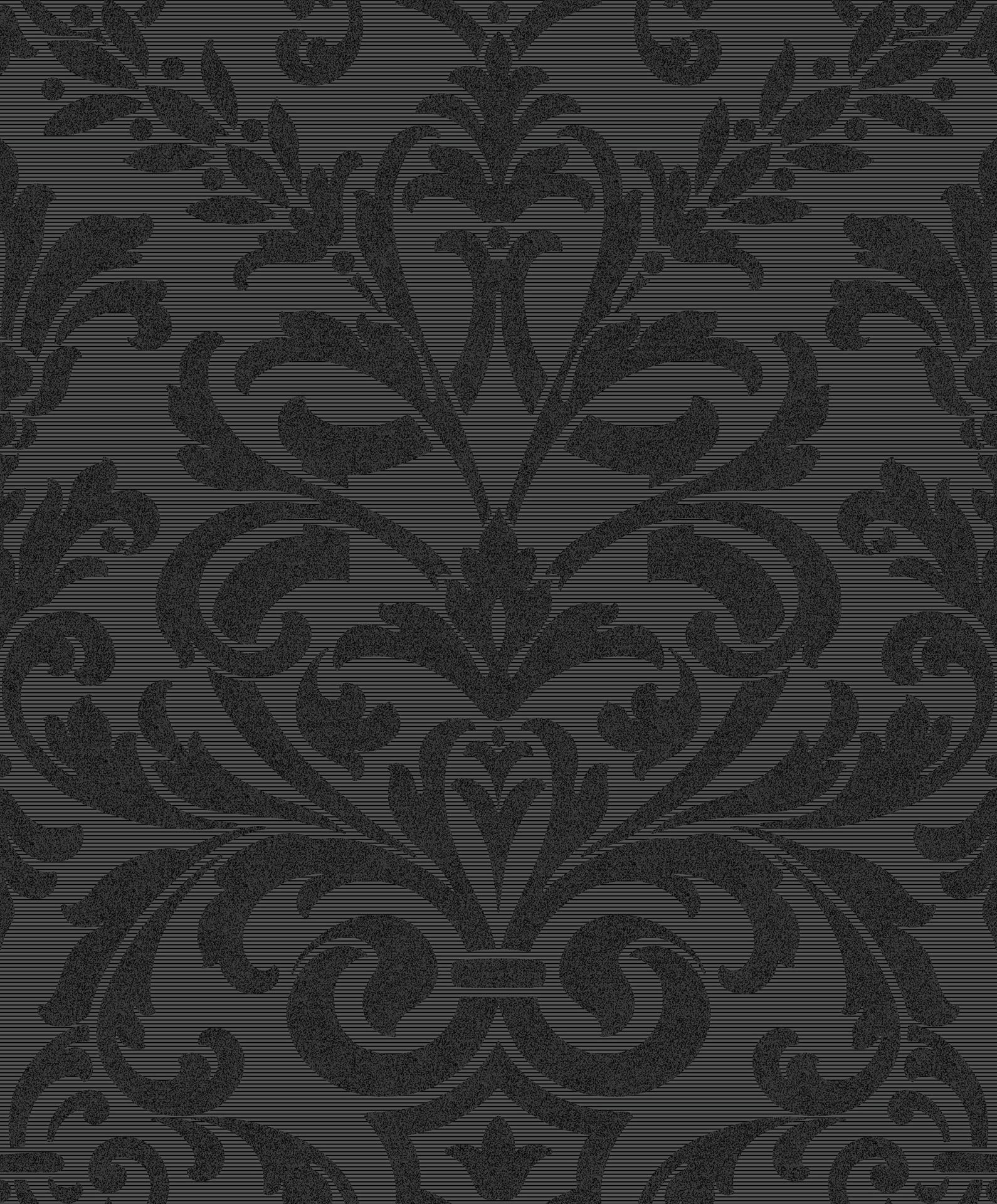 Enhance your space with this Blacks Damasks and Scrolls Wallpaper, perfect for entryway, half bath, and living room.
