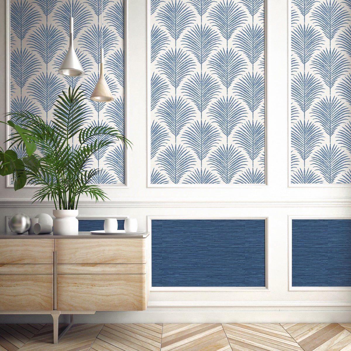 Enhance your space with this Blues Trees and Leaves Wallpaper, perfect for living room, hallway, and nursery.