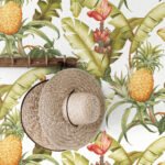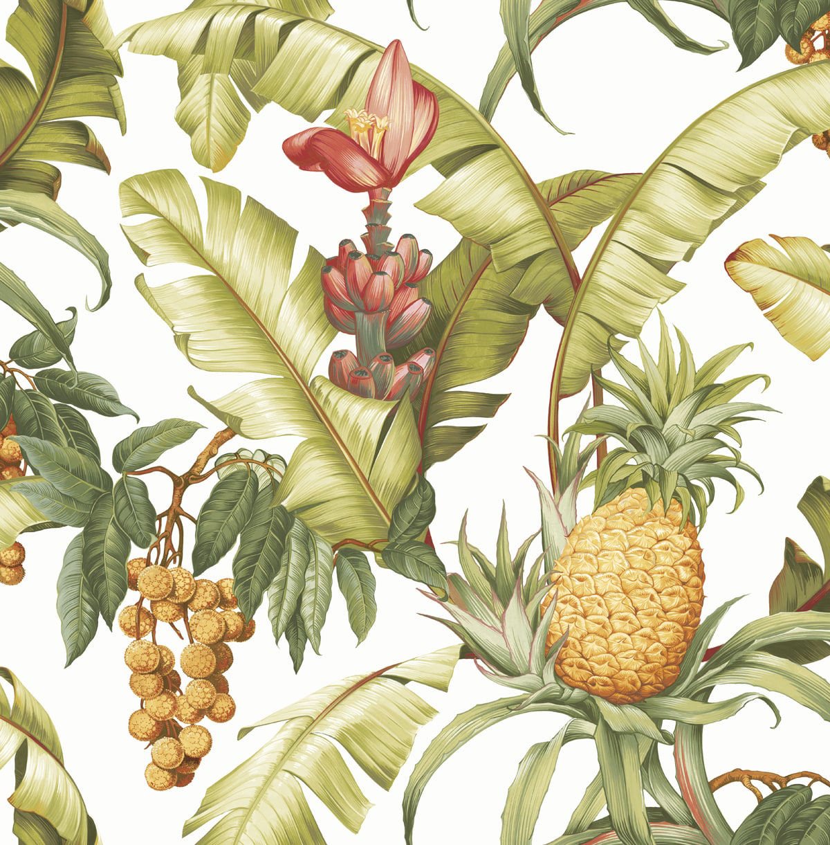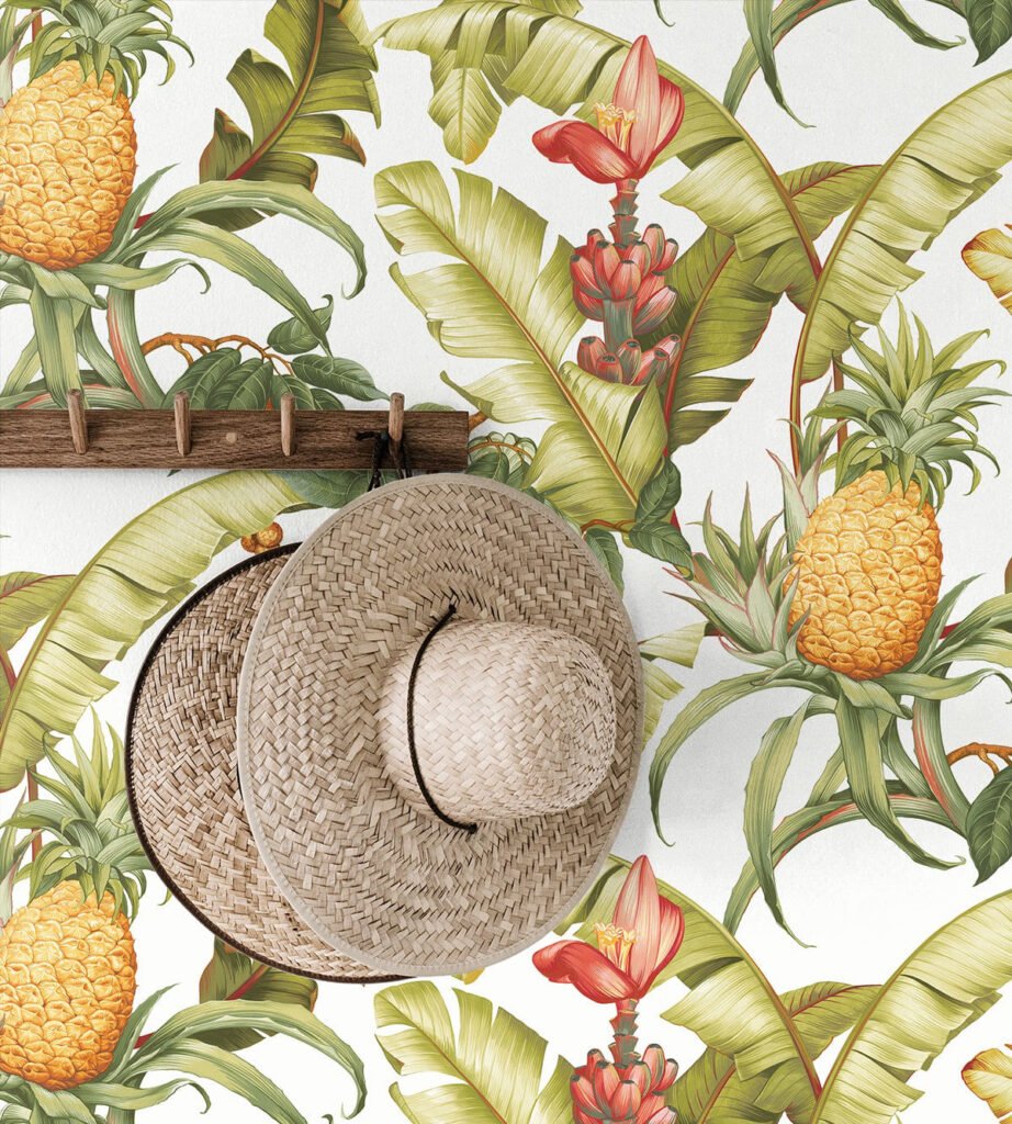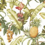 Maui Pineapple Floral – White | Whites and Off Whites Florals, Botanicals and Tropicals Wallpaper for Powder Room, Hallway, and Nursery