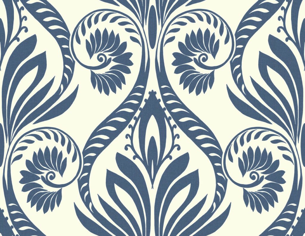 Bonaire – Navy Blue and White | Blues Damasks and Scrolls Wallpaper for Nursery, Powder Room, and Dining Room