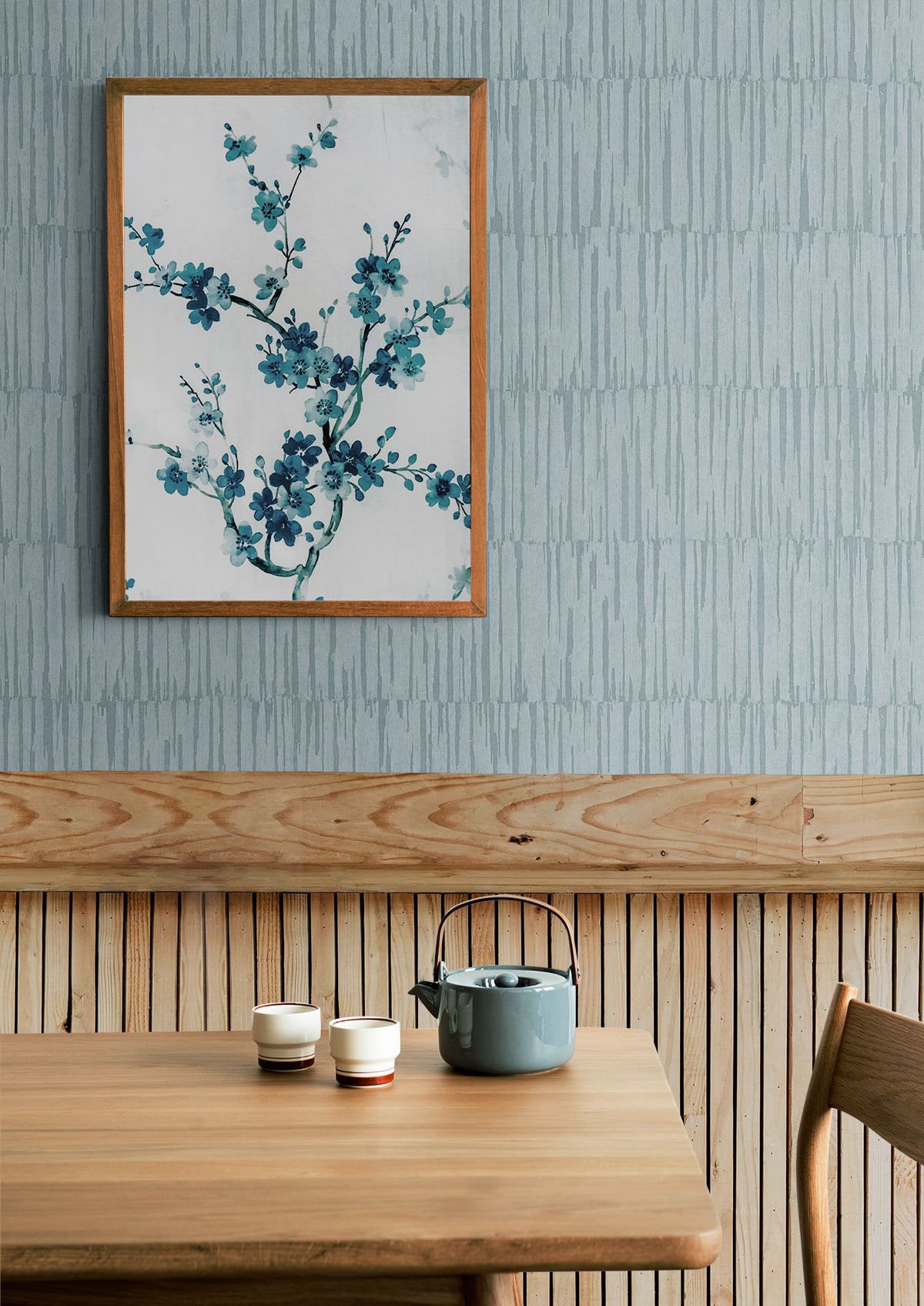 Enhance your space with this Blues Textures Wallpaper, perfect for living room, dining room, and kitchen.