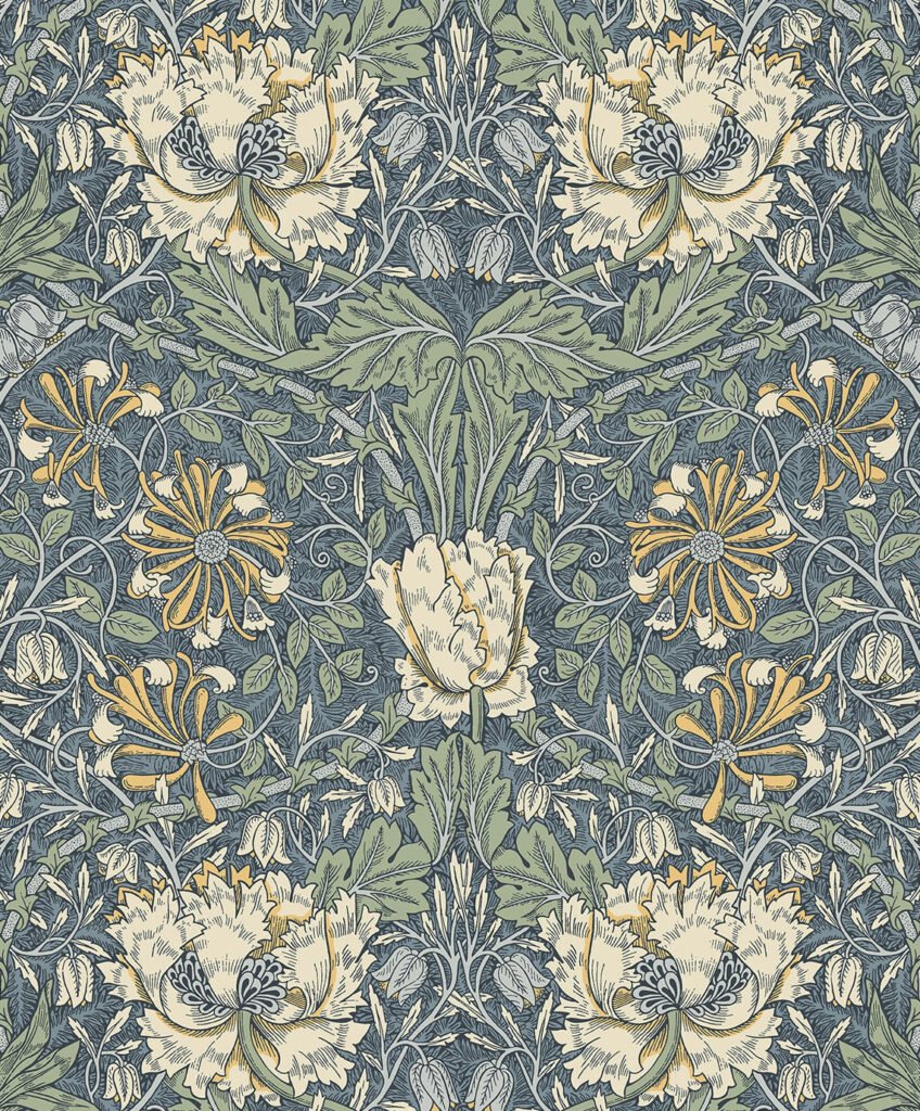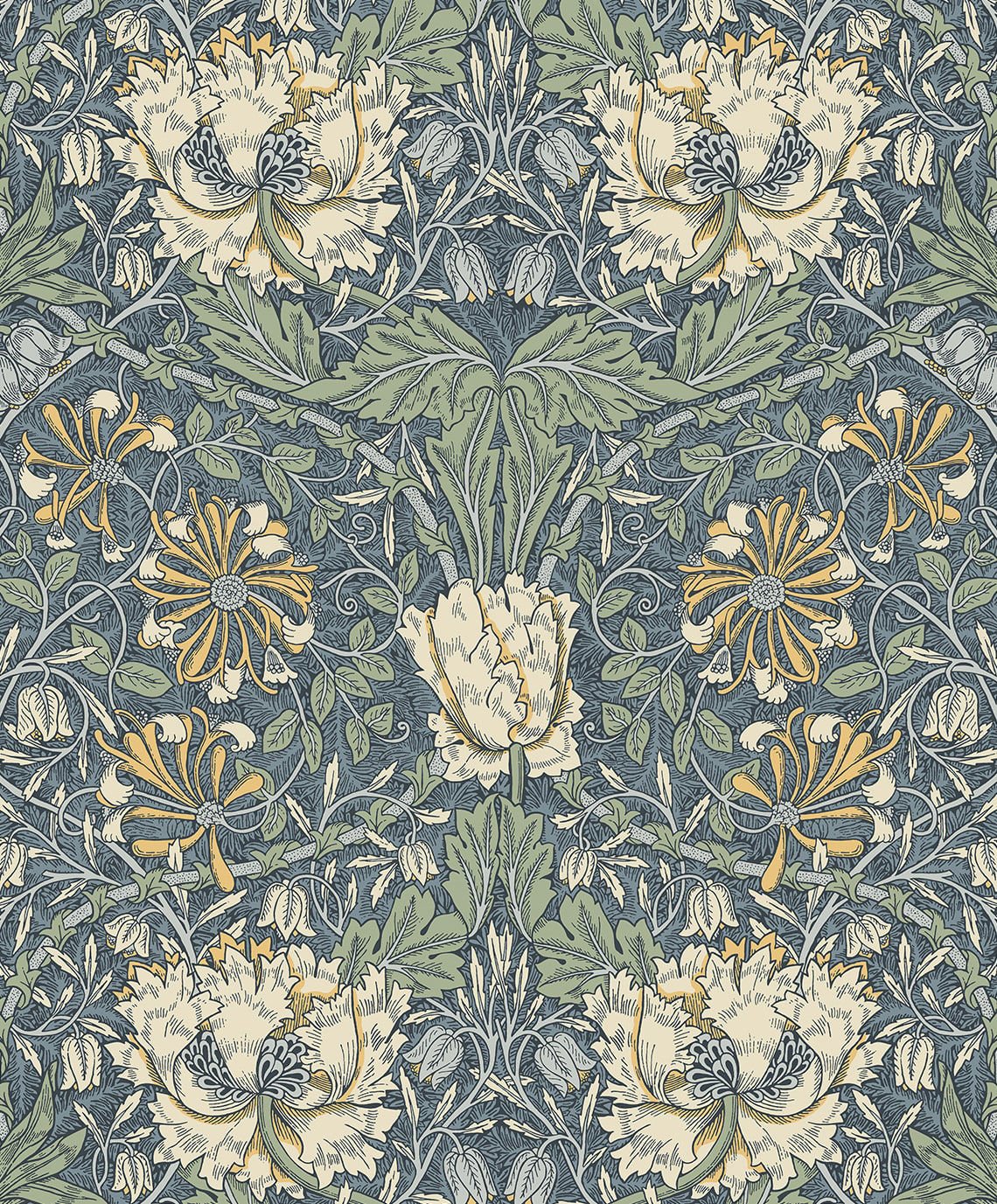 Ogee Flora – Blue Lake and French Vanilla | Blues Florals, Botanicals and Tropicals Wallpaper for Hallway, Powder Room, and Half Bath