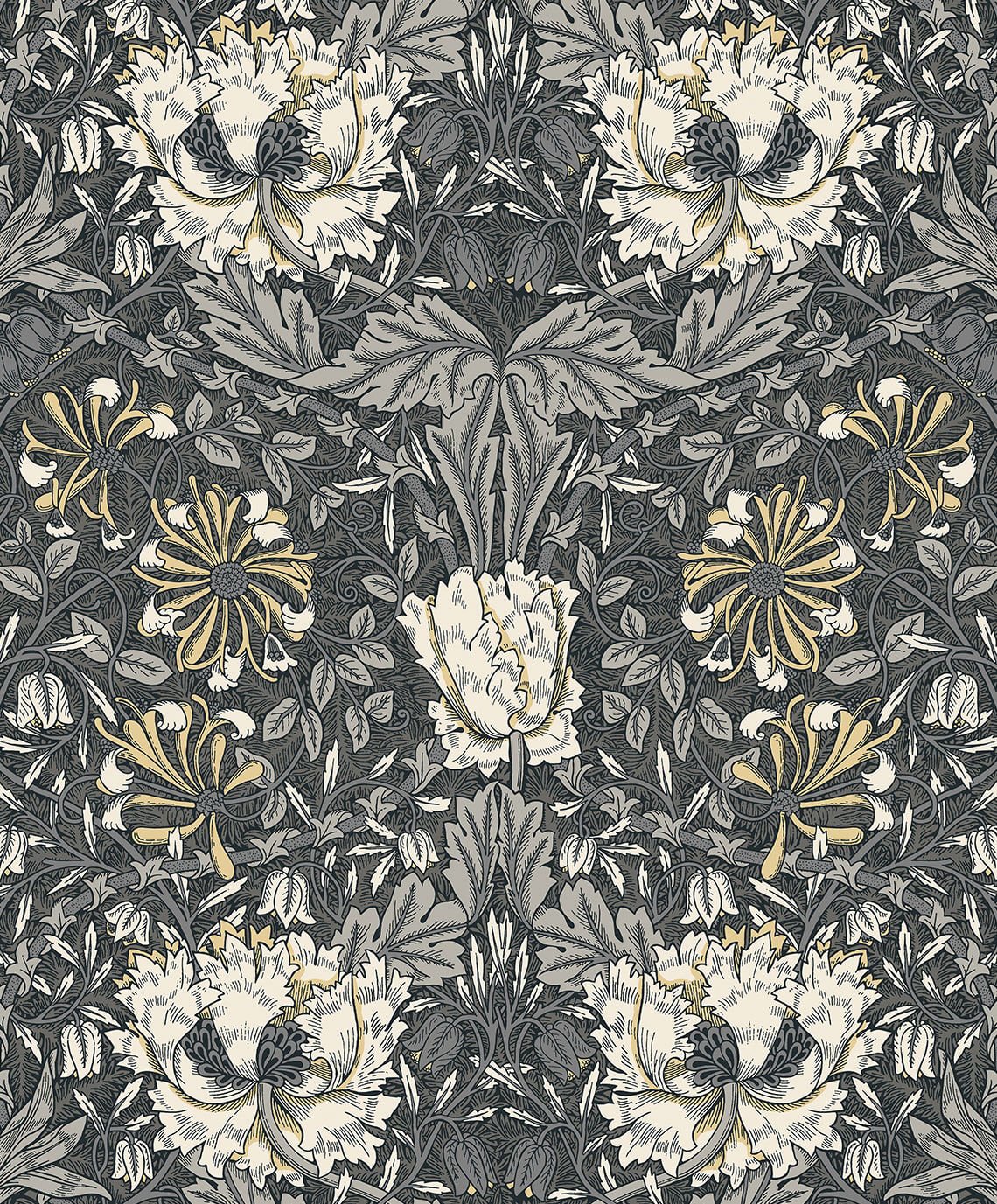 Ogee Flora – Charcoal and Goldenrod | Grays Florals, Botanicals and Tropicals Wallpaper for Entryway, Bedroom, and Nursery