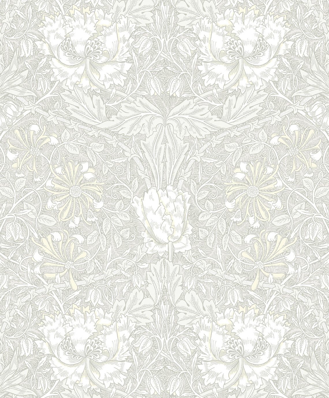 Ogee Flora – Swiss Coffee and Light Grey | Warm Neutrals and Beiges Florals, Botanicals and Tropicals Wallpaper for Dining Room, Nursery, and Half Bath