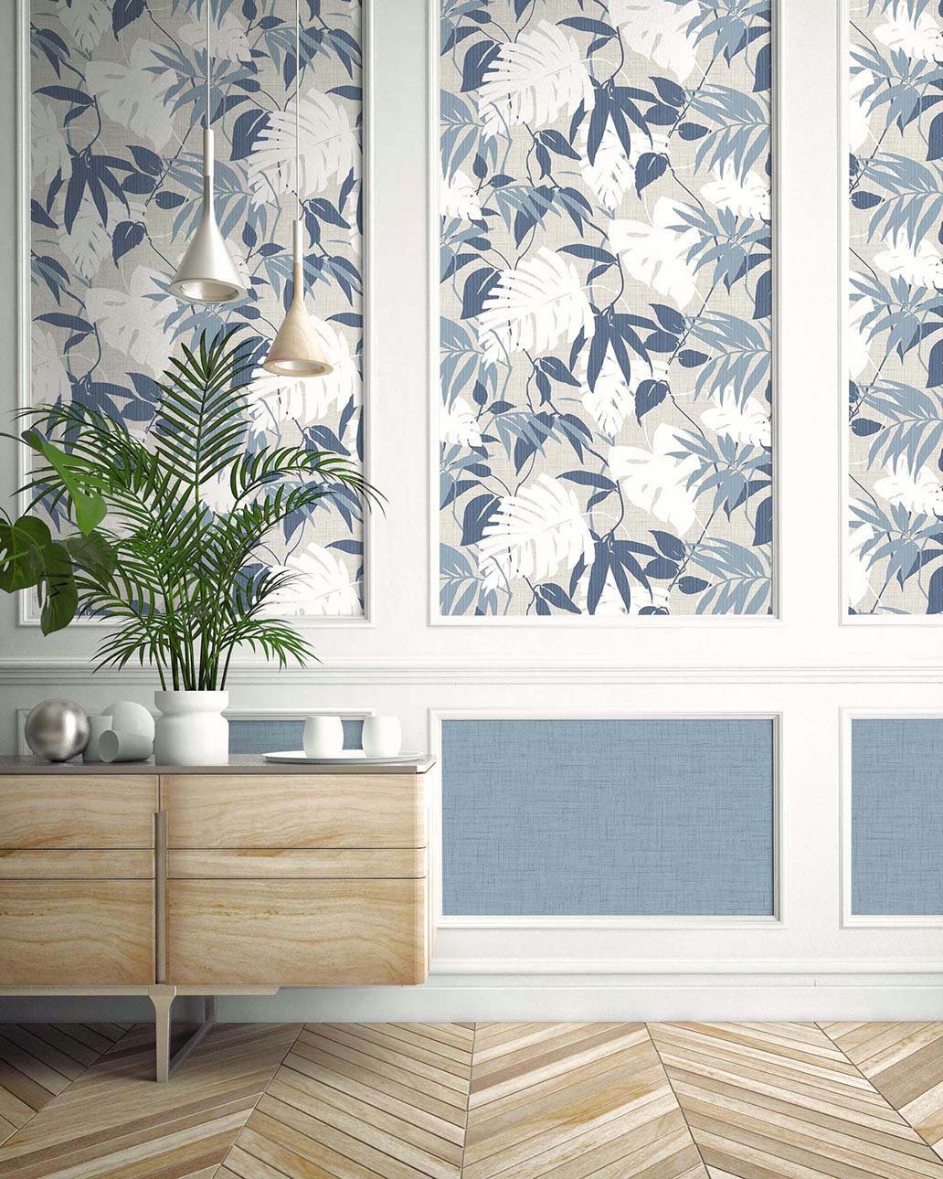 Skyline Flowers | Blues Florals, Botanicals and Tropicals Wallpaper for Living Room, Hallway, and Half Bath