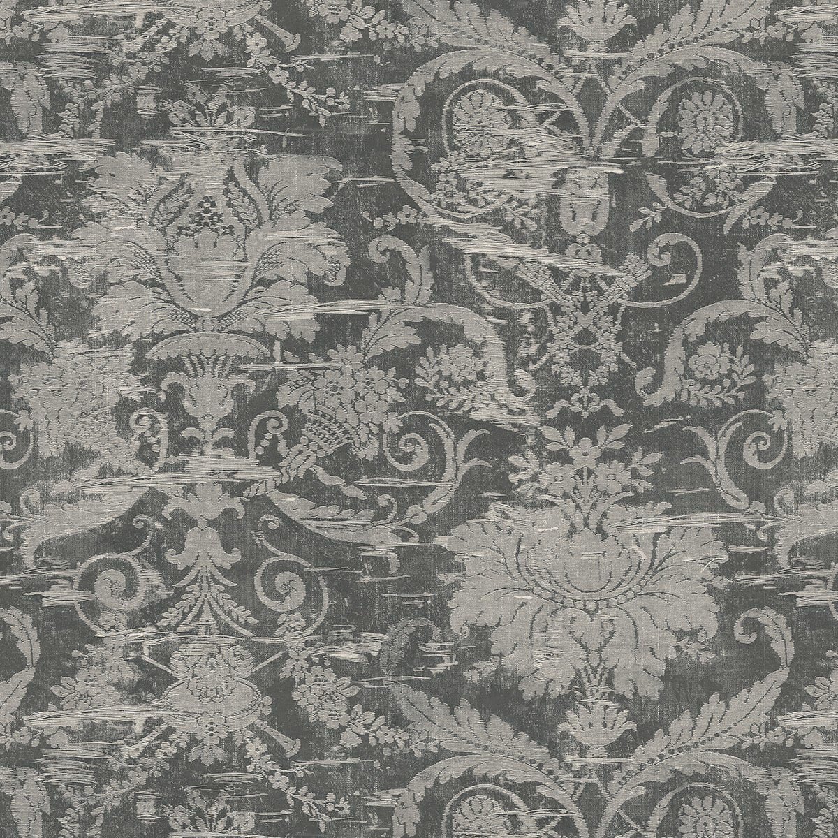 Rochester – Storm Warning | Blacks Damasks and Scrolls Wallpaper for Office, Entryway, and Half Bath