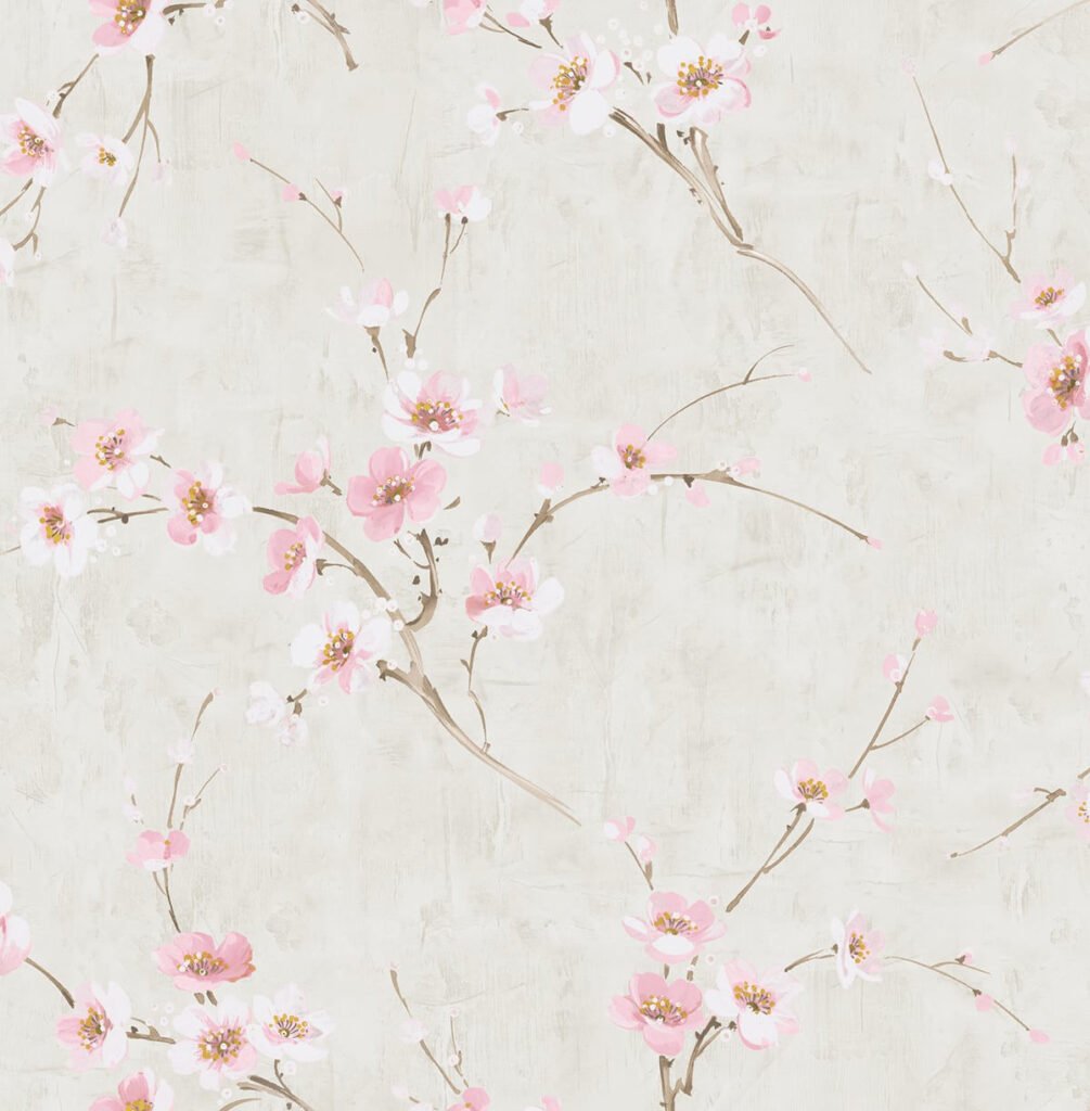 Silk Road – Metallic Pearl and Pink | Pinks Florals, Botanicals and Tropicals Wallpaper for Entryway, Living Room, and Nursery