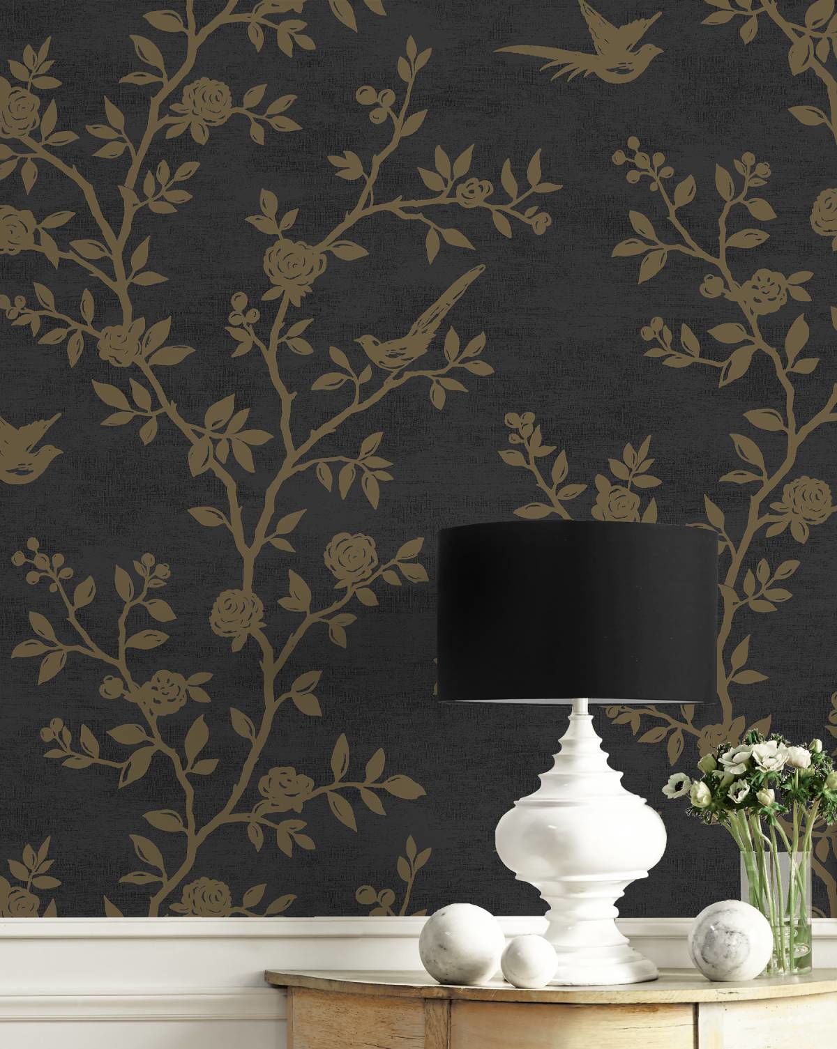 Silhouette – Peppercorn and Champagne Metallic Blacks Asian and Chinoiseries Wallpaper is a premium asian and chinoiseries wallpaper designed to elevate your accent wall, office, and dining room. Crafted with high-quality materials, this wallpaper combines durability and elegance, making it the perfect choice for those seeking a sophisticated touch. Its asian and chinoiseries design adds texture and depth, enhancing any space with warmth and character.